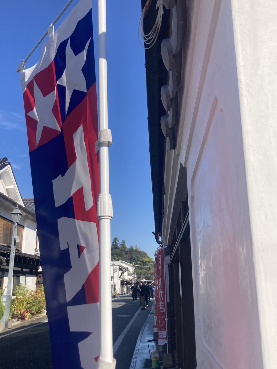 見てよぉ〜 タミヤフラッグ越しの 青空 秋の空 真っ青だ 風もなく はっきりいって #行楽日和 #紅葉狩り にベストな日 そうだ ソーダ カルピスソーダ 週明けは 急な冷え込みらしいです 体調管理に努めませう pic.x.com/Jgq0o326NV