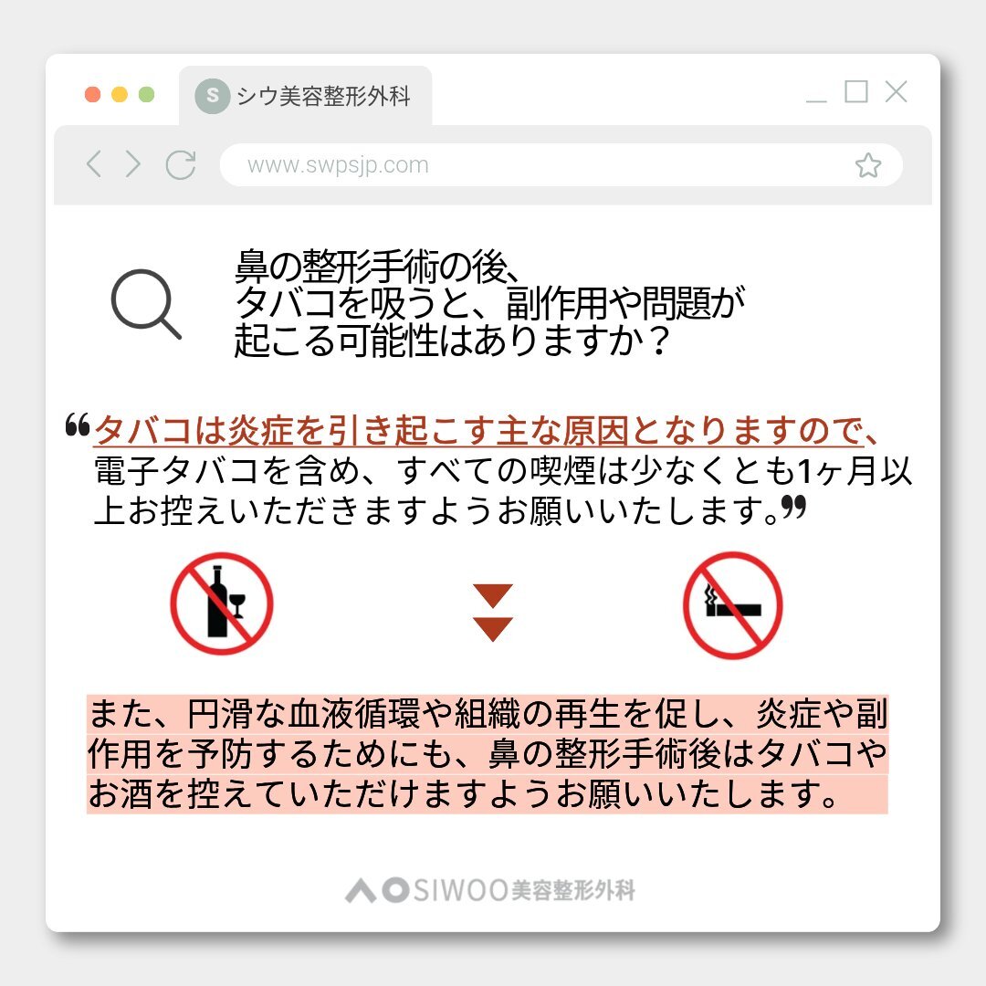 鼻の手術後にお酒やタバコは大丈夫?🤔 多くの方が気になる「飲酒・喫煙」のタイミングについて、 ドクターが分かりやすくQ&A形式で解説します!✨ 術後の腫れを早く引かせたい方、きれいに治したい方は必見です。 #鼻整形 #術後ケア #飲酒 #喫煙 #美容外科QandA pic.x.com/Dqfgh3JXjU
