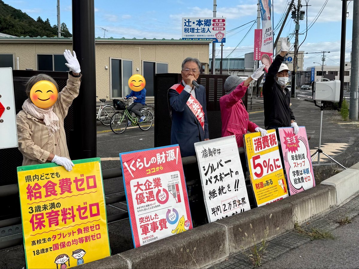 いつもの交差点、他の方が辻立ちされていたのでお譲りして、今朝は #福島競馬場 前での #街頭宣伝 になりました。 県内65%の自治体で進む給食費無償化や、高齢者の公共交通利用助成の上限額撤廃など、暮らしの問題解決は待ったなしです。 #おぐま省三 #福島市 #日本共産党 pic.x.com/YlOlz1N3Ix