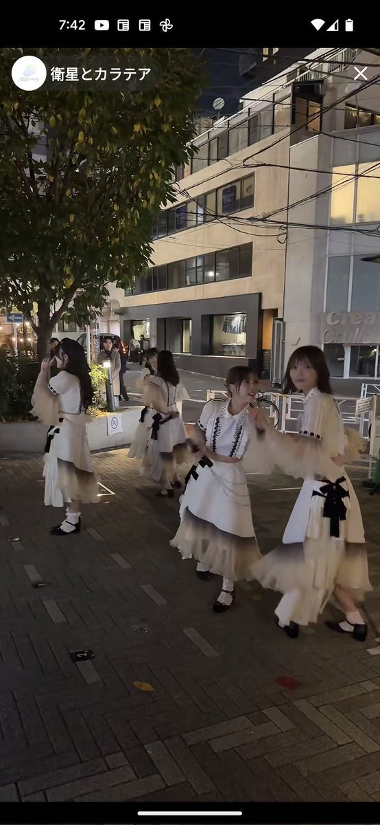 ストリートライブ2回目(四回目でもある)お疲れ様でした🤗 途中赤ちゃん見てたし、お兄さんが小さく拍手してるのが可愛かったです笑 時間帯に衣装が相まって綺麗でした✨ #衛生とカラテア pic.x.com/3OuDSOHMQx
