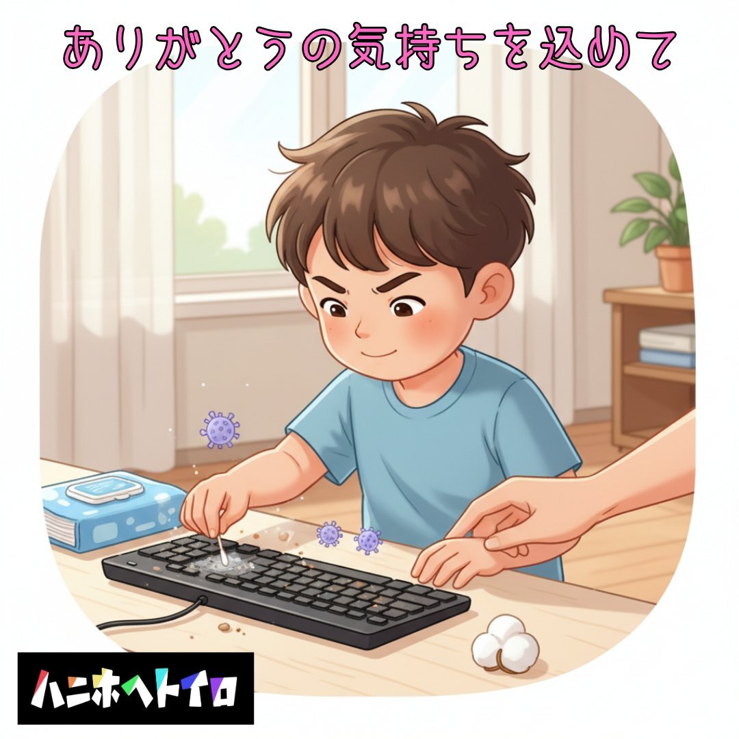 今日はグローバル手洗いの日。実は、キーボードはトイレの便座より5倍汚いと言われています💩 ①電源OFF&ケーブルを抜く ②逆さにして軽く振る ③綿棒でキーの間を掃除 ④除菌シートで拭く 親子で一緒にPC掃除も学びの一つ! #グローバル手洗いの日 #PC掃除 #デジタルマナー #衛生管理 #親子で掃除 pic.x.com/KZqEeVNsBf