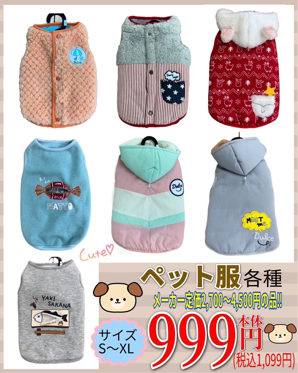 あったか素材の✨ かわいい💕 ペット服🐶入荷 ペット服各種 S〜XLサイズ メーカー定価2,700〜4,500円の品 999円(税込1,099円) ※南陽店・鶴岡店・北上店・湯沢店・西馬音内店・大曲北店・フォンテ店・能代店・大館南店はお取り扱いの対象外です。 #ニューライフカネタ #衣料品店 #カネタ #ペット服 pic.x.com/oPXl7CG3ie