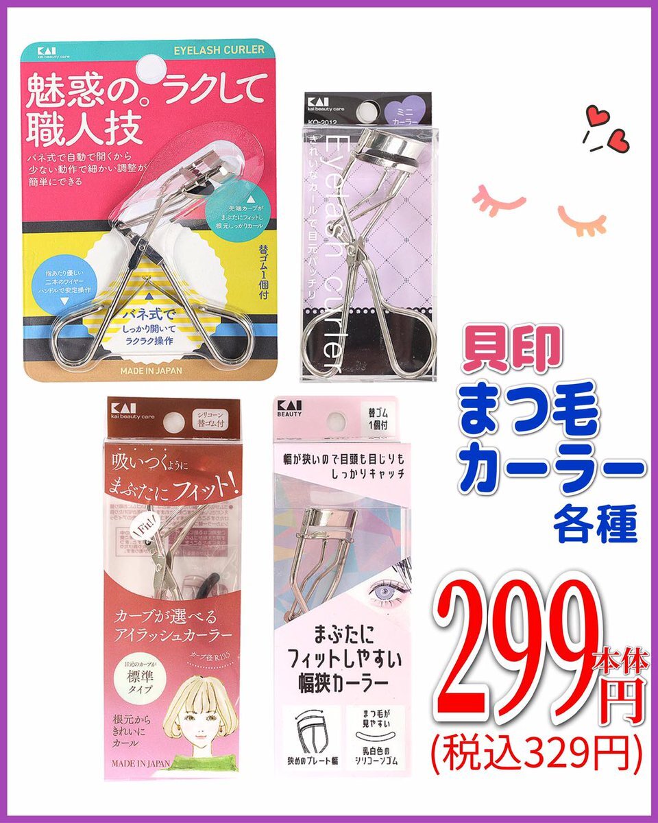 まつ毛をキメて 目元ぱっちり😊 ミニカーラーや 標準タイプなど いろいろ入荷‼️ まつ毛カーラー各種 299円(税込329円) ※米沢店・東根店・鶴岡店・西馬音内店・大曲店・フォンテ店はお取り扱いの対象外です。 #ニューライフカネタ #衣料品店 #カネタ #ニューライフ #美容 #まつ毛 #カーラー pic.x.com/C2W3xN2DLm