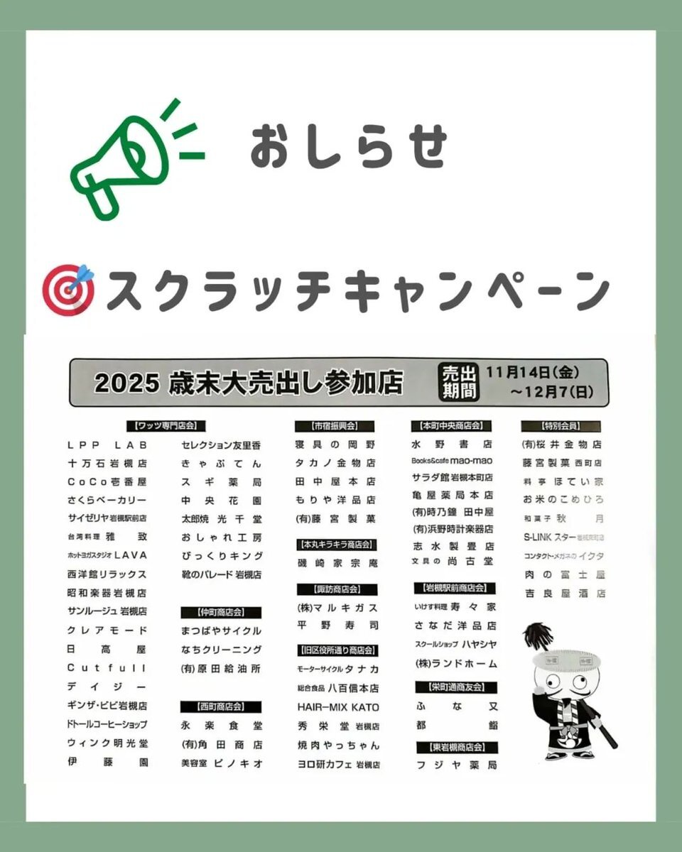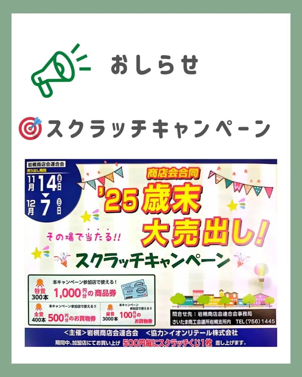 🎯【歳末大売出し】🎯 その場で当たる✨スクラッチキャンペーン開催!🗓11/14〜12/7 500円ごとに1枚🎫特賞は1,000円商品券🎁年末は畳替えのチャンス🌿新しい畳で気持ちよく新年を🎍 #志水製畳店 #畳 #表替え #岩槻区 #さいたま市 tatami-shimizu.com pic.x.com/XYRzPqBdty