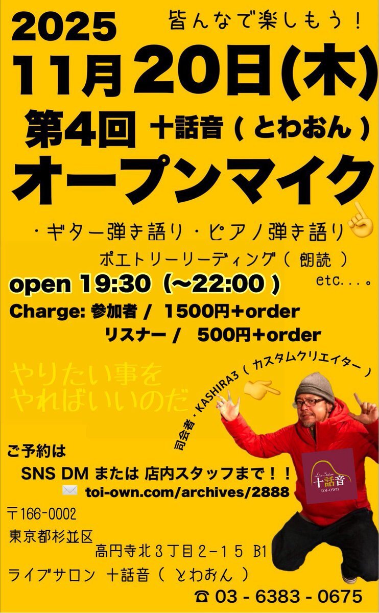 第4回目にして十話音もオープンマイク少しずつ慣れて参りましたー。 関わって頂いた多くの方々に感謝です♪ どなたでもウェルカムな雰囲気です。皆様のご予約お待ちしております! 📧 contact@toi-own.com 📞 03-6383-0675 お待ちしておりまーす🎙️ #高円寺オープンマイク #オープンマイク #表現者 x.com/kashira3noradi…