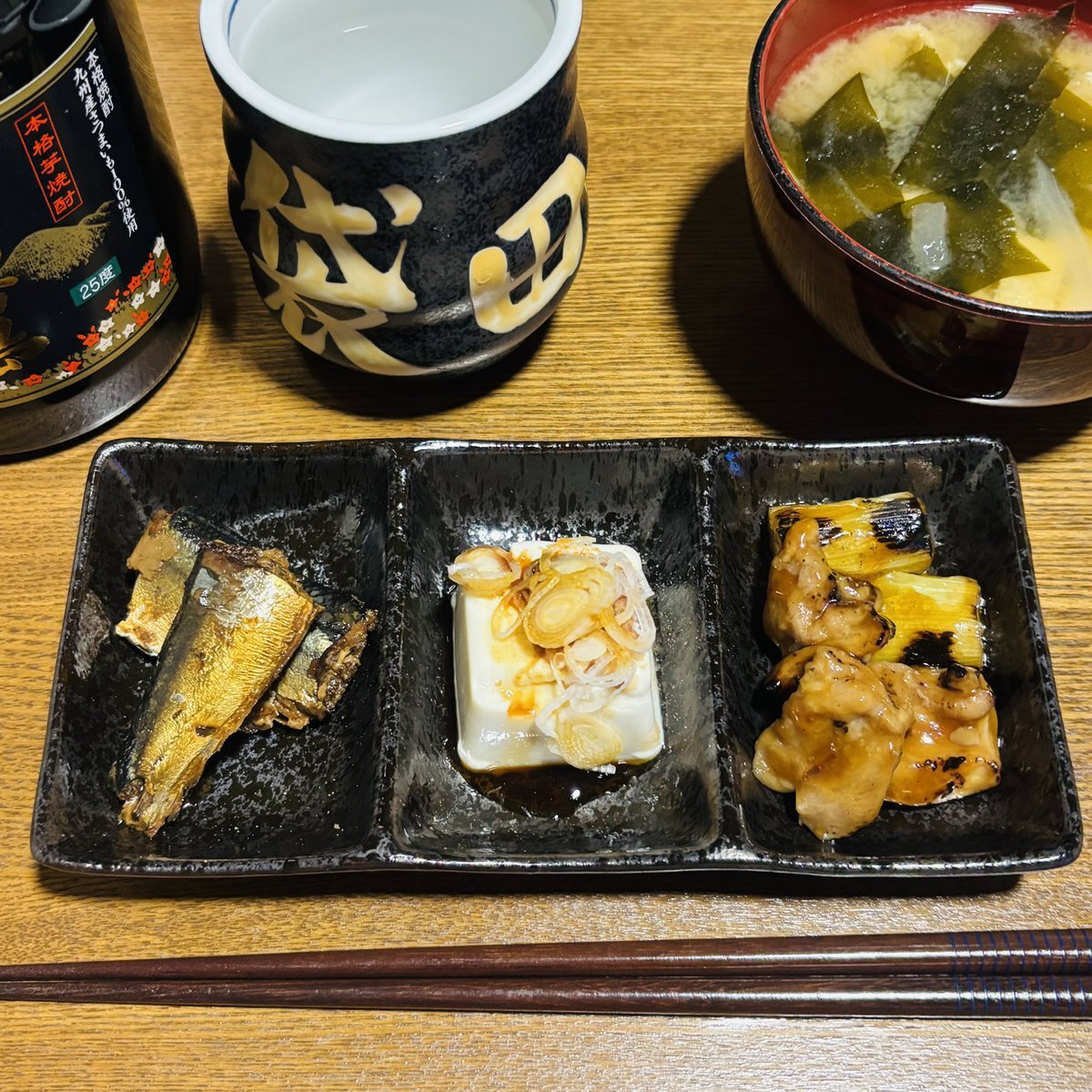 今日の3連おつまみは、 ・さんまの煮付け ・豆皿豆腐 ・ねぎま 汁は玉ねぎとジャガイモとワカメと油揚げのお味噌汁。 お酒は袋田の滝で買った湯呑みで黒霧のお湯割りです。 それでは皆さま今日もお疲れ様でした。 カンパーイ❗️🍻 #X晩酌部 #ツイッター晩酌部 #袋田の滝 pic.x.com/mcPMr76Rtn