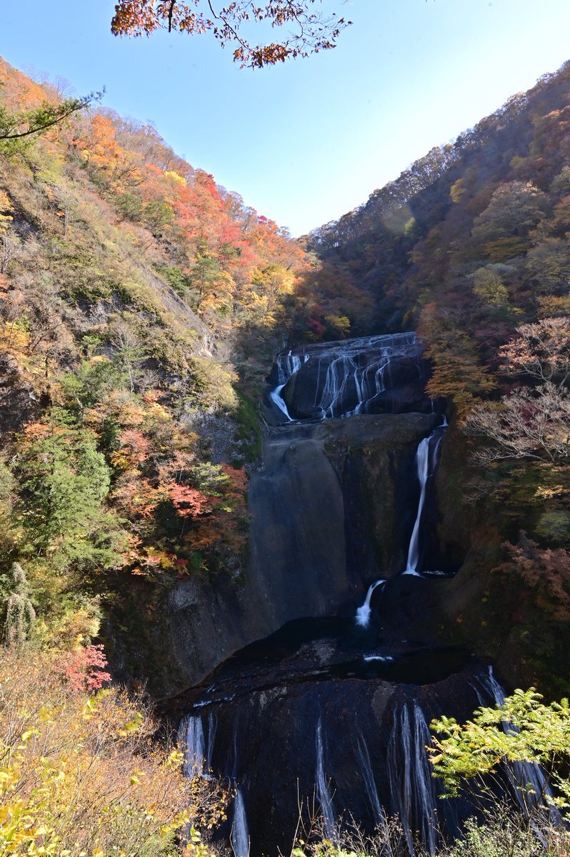 お次は #袋田の滝 こちらは7〜8年前ぶり。 その時は氷瀑を見に来ていたのでした😓 山側も黄色や赤・オレンジ〜茶と緑もありますが、全体的には見頃と言われてました🍁 う〜ん、でもやはり水量が少なかったのは惜しいかな🙄 pic.x.com/tdasWHGRVO