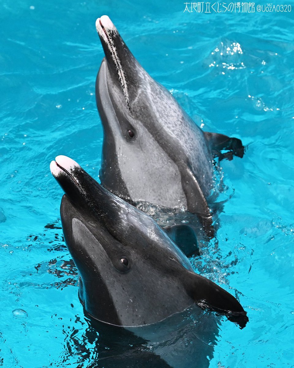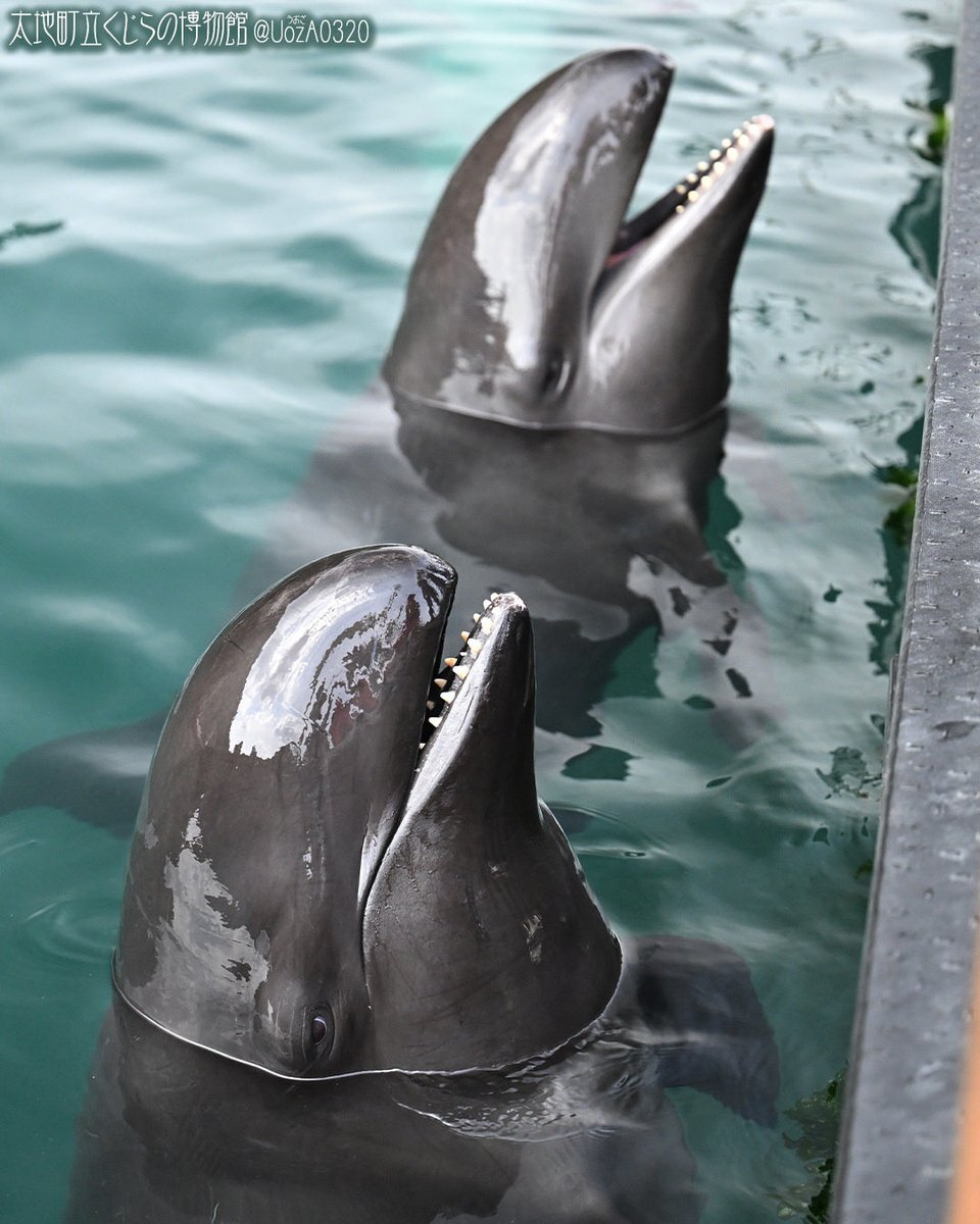 おはようございます🤗 ひよか&すずか姉妹、仲良くお魚待ち🐟🐟🐟 うーん🤔やっぱり見分けが難しい… 今日も楽しい一日になりますように! #太地町立くじらの博物館 #くじら博 #taiji_whale_museum #交雑種 #ひよか #すずか #被写体の幸福を祈りシャッターを切る pic.x.com/0TiiXxYJMP