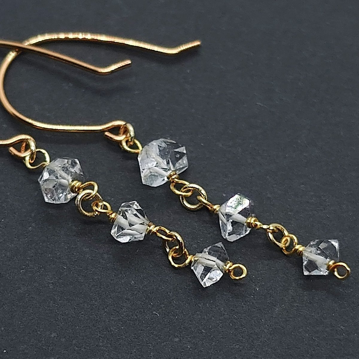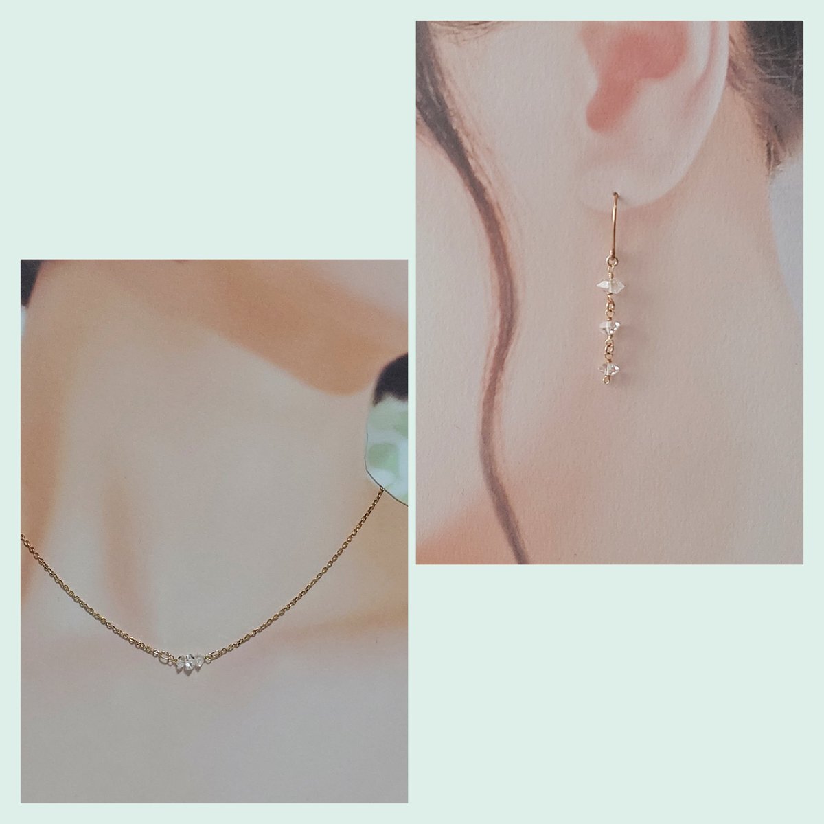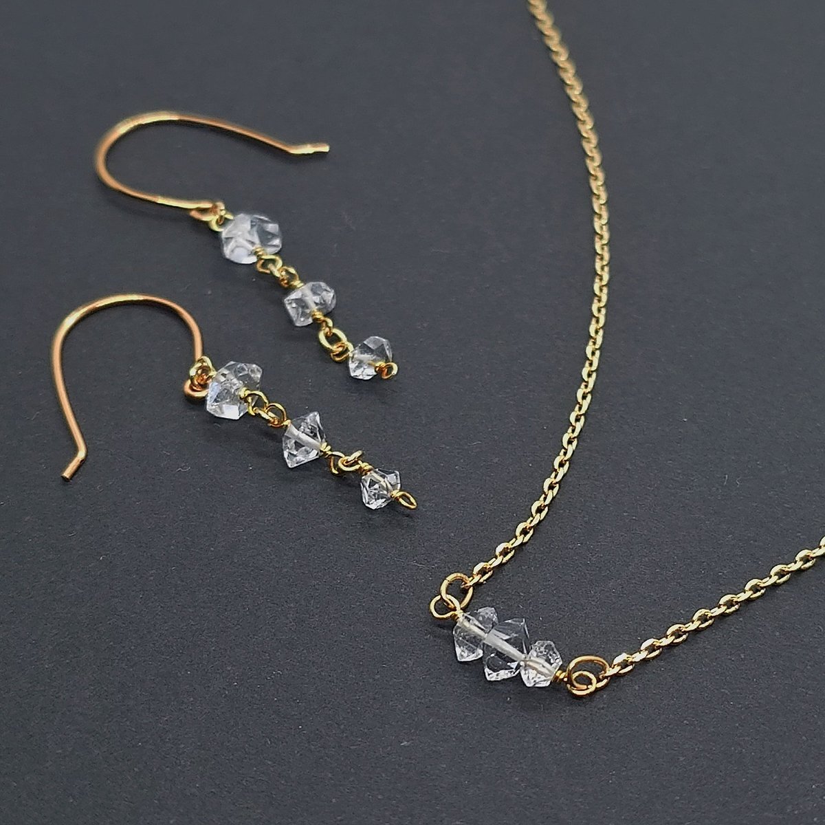 #装いを仕上げるラストピース ハーキマーダイヤモンドのセットアップ 瞬くダブルターミネーターの結晶 雫をイメージしたおしゃれな3連です✨ セットアップで付けるとコーデに統一感が出ます😊 ギフトや自分へのご褒美にも🎄🎁☺️ minne.com/items/42238460 pic.x.com/TrTlk13pxr
