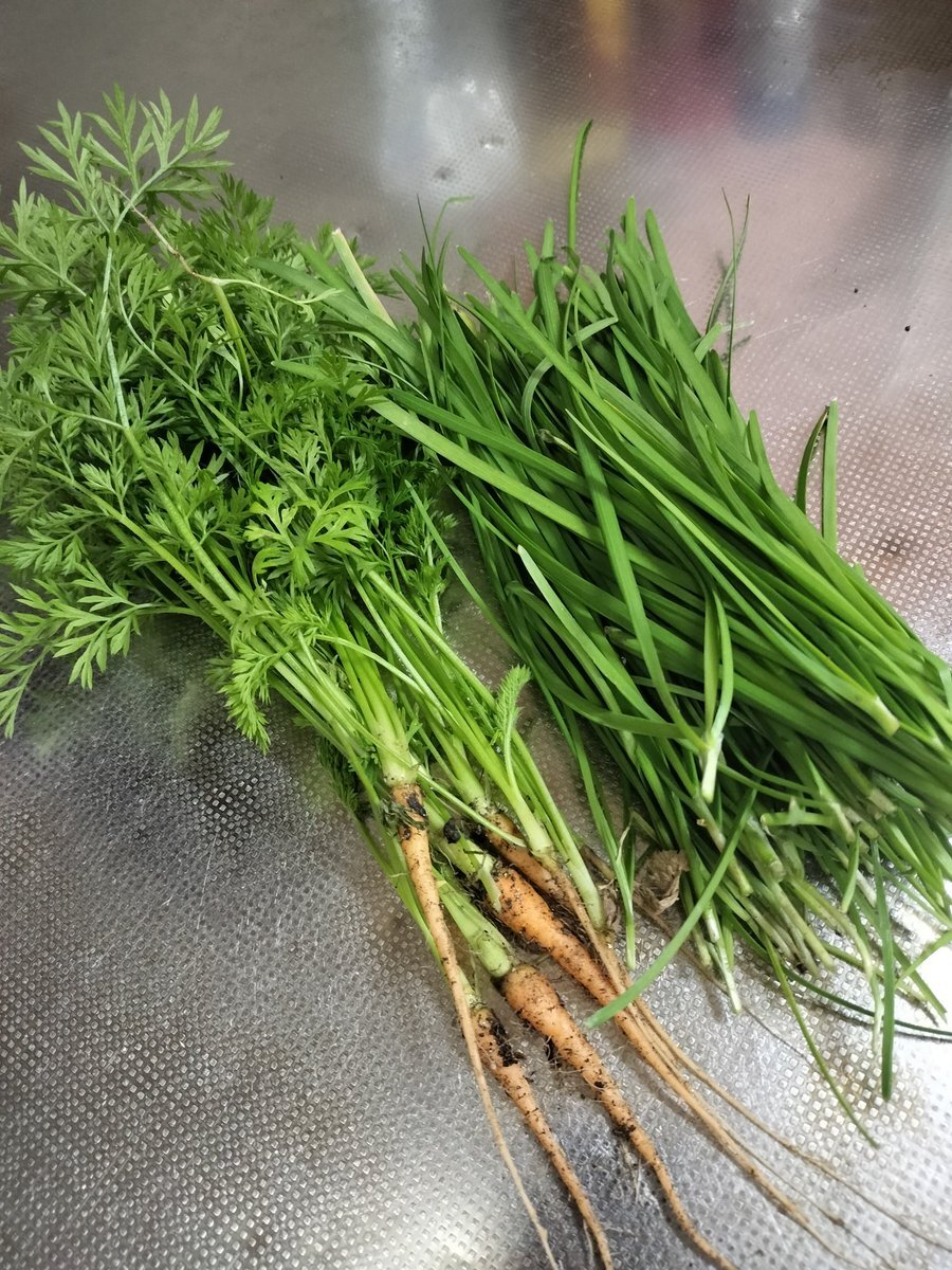 今朝の収穫! 我が家の 裏庭畑 今採れるのは 野良ニラ君 と 間引き人参🥕ちゃん くらいです👨‍🌾 #家庭菜園 #裏庭畑 #ニラ #人参 #週末農家 #獲って喰う pic.x.com/mEqn0SQ5Ht