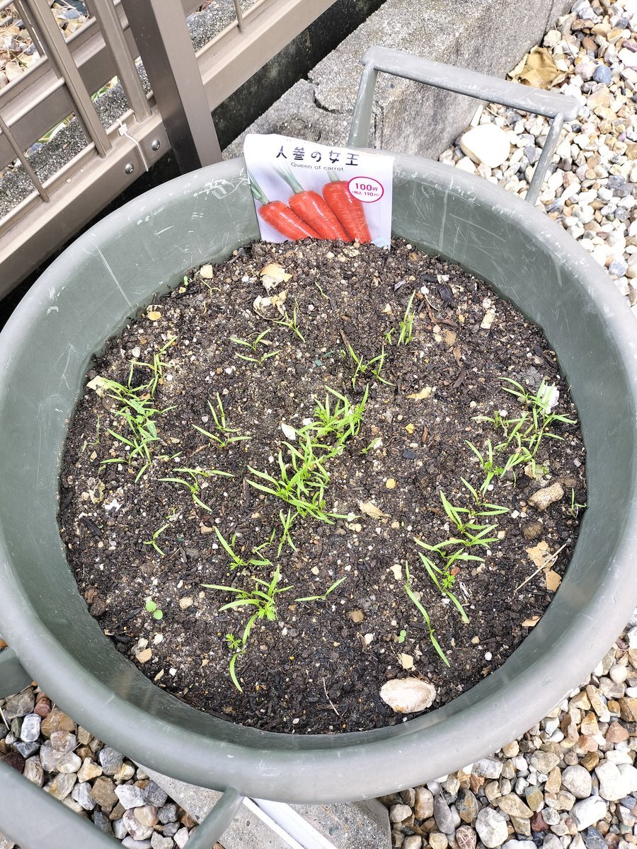 人参🥕 順調に成長中📈 一回目の間引きをしましたが どのくらい 抜くのか よくわかりません #家庭菜園 #裏庭畑 #人参 #週末農家 pic.x.com/DAhzdhF8tI