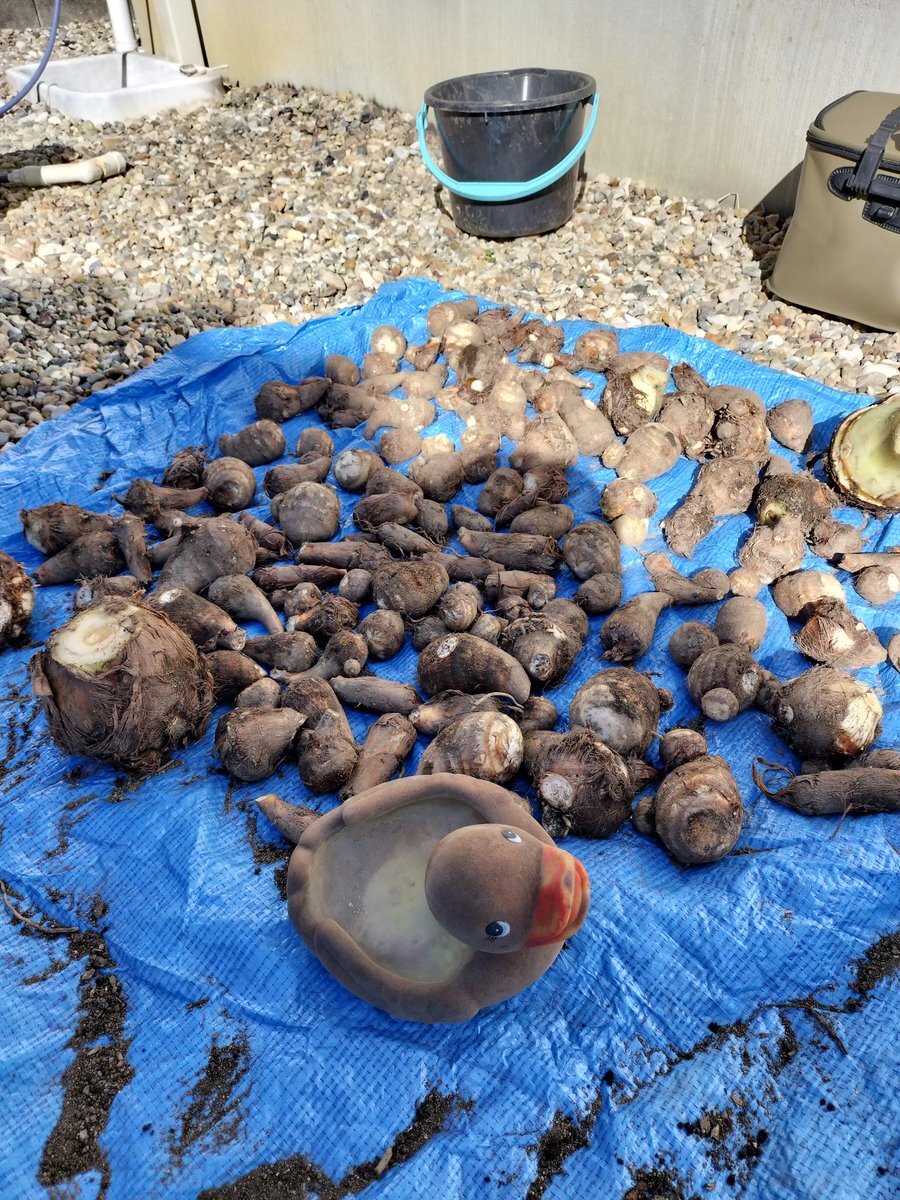 里芋ちゃん 収穫しました 3株分です 煮っころがし みそ汁 きぬかつぎ おでん🍢 とうぶん楽しめます👨‍🌾 #家庭菜園 #里芋 #週末農家 #裏庭畑 pic.x.com/rTBJuVsyXn