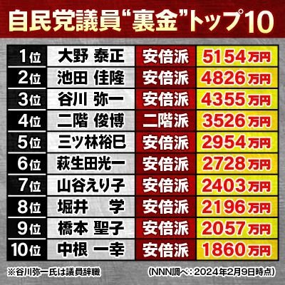 はい、おつ。 …うまく自民が政権から追われて、自民じゃない党が舵取りをして、数年間経って「もう自民だけが権力を握っているんじゃないんだ」と大企業や資本家や検察が身に染みて。 それで漸くどうにか法治国家になれるんじゃないかな。何年かかるかな。 #裏金脱税統一教会自民党 #滅べ自民党