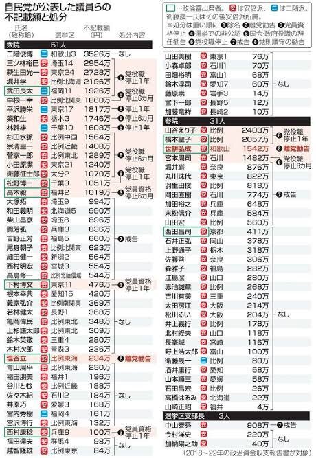 自民党総裁選に立候補した議員を推薦してる国会議員の名前もちゃんと見た方がいいよ。 裏金議員が推薦してる候補者なんて「私は裏金を推奨します」「国会議員たるもの裏金を作るのは常識」と考えてる証左だからね。 と言う事で裏金議員リスト載せとく。 #自民党総裁選 #裏金議員は全員逮捕 pic.x.com/a9Vn6m52nI x.com/tweet_tokyo_we…