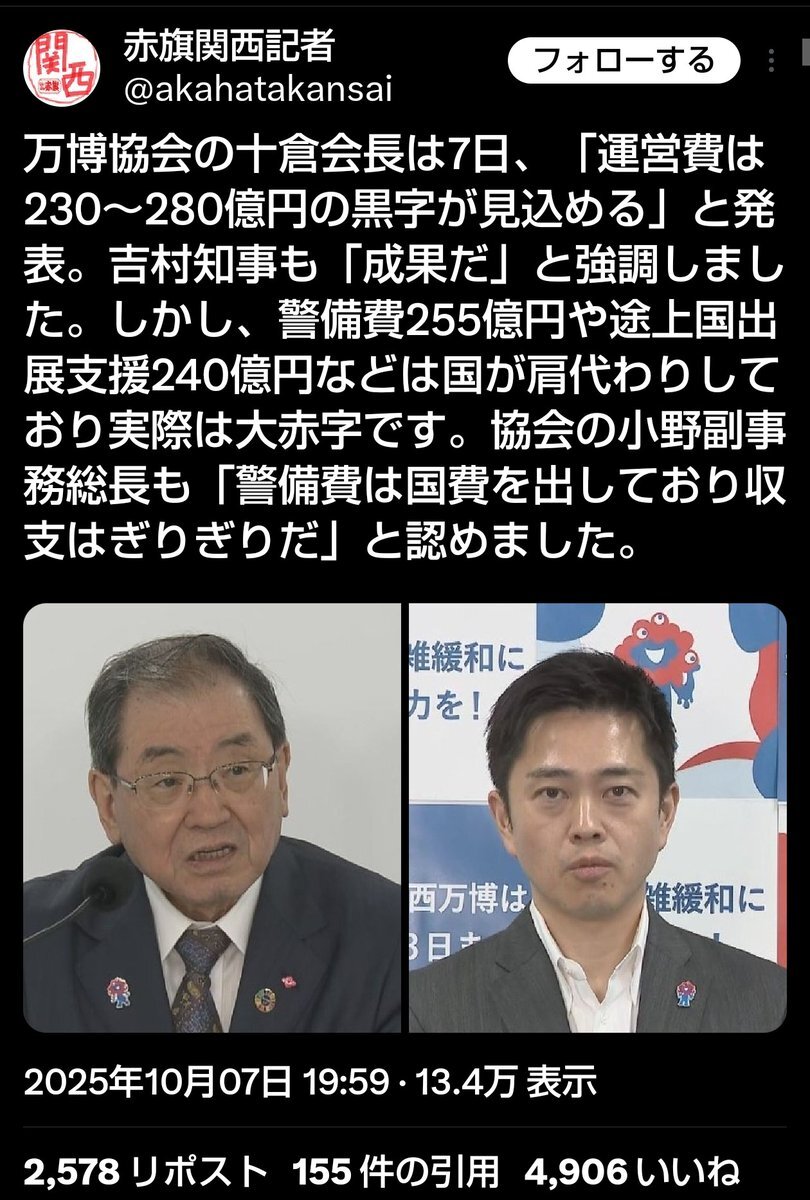 万博も残り5日。経産大臣当時、野党から厳しく言われましたが、何とか黒字化できそうでホッとしています。 大屋根リングも、「現代のピラミッド」と表現して散々言われましたが、ギネスにも登録され、評価頂いていることに感謝です。 x.com/nishy03/status… x.com/nhk_news/statu…