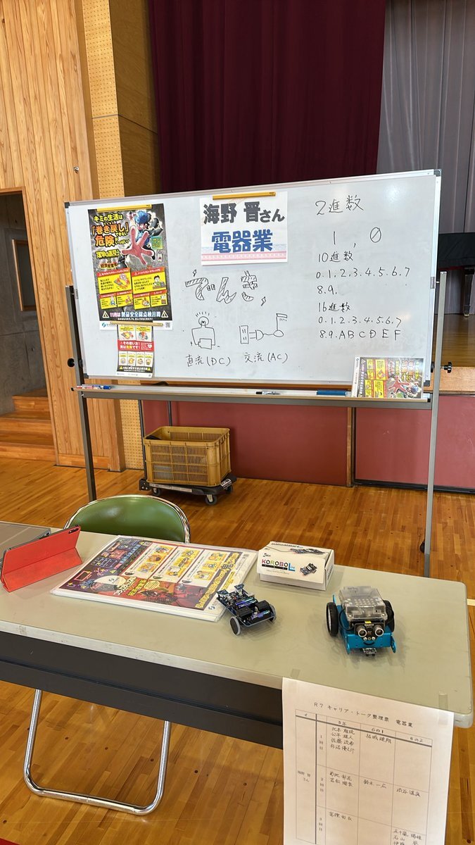 本日、社長のむーちゃんは、 大江町にある左沢小学校でキャリアトークをやりました。 5、6年生のキラキラした瞳の前では、とても緊張しますね。 でんきやの話、小学生の頃の話、プログラミングの話、製品安全の話をしました。 #あい電 #カイノ電器 #製品安全総点検月間 #大江町 #キャリアトーク pic.x.com/PVXh2CwJDw