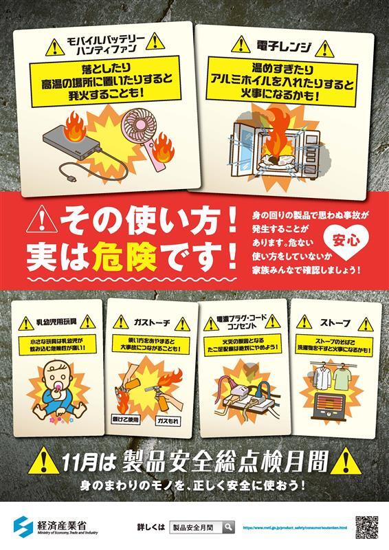 【11月は「製品安全総点検月間」です!】 身の回りの製品を清掃や点検をせずに長い間使い続けたり、誤った使い方をしたりすると火災などの思わぬ事故につながるおそれがあります。 この機会に確認してみましょう。 kanto.meti.go.jp/seisaku/seihin… #製品安全 #製品安全総点検月間 #製品事故 pic.x.com/Y76fOI9b4R