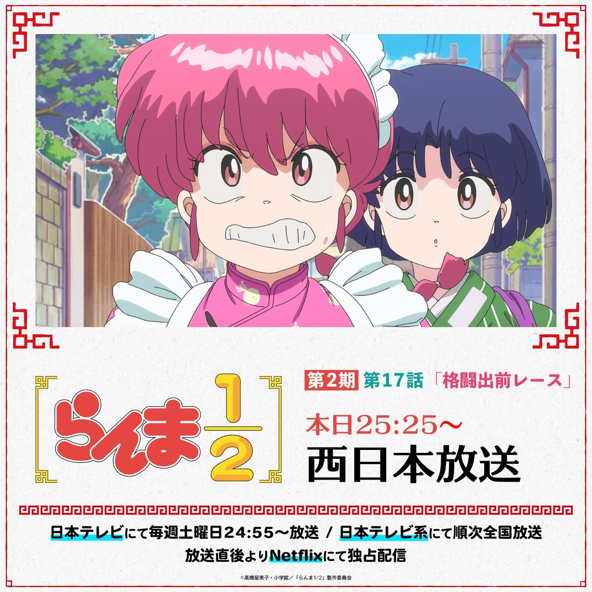 ⠀// 📢 本日は西日本放送で放送! ⠀\\ 第2期5話目✨ 第17話「格闘出前レース」 #西日本放送 にて25:25~放送! 放送地域の皆さま、ぜひご覧ください!🍥 #らんまアニメ #ranma 📺TVアニメ「らんま1/2」第2期 日本テレビ系にて全国放送中 Netflixにて独占配信中 ▼一覧はこちら! pic.x.com/GtwjsggXgL