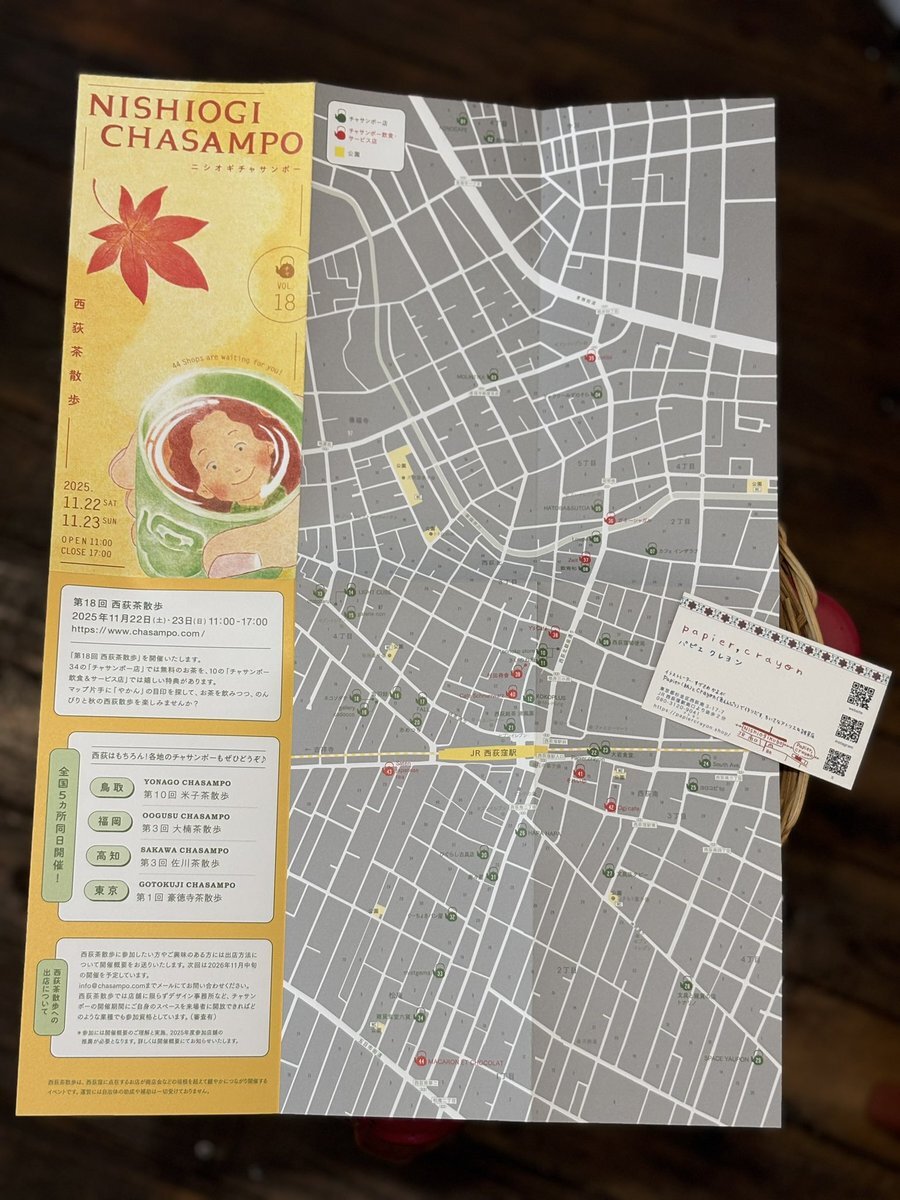 西荻のいろんなお店でお茶がふるまわれる街歩きイベント「第18回 西荻茶散歩」マップ配布始まりました。 11月22日(土)、23日(日) chasampo.com どうぞよろしくお願いいたします🍵 #西荻茶散歩 #ニシオギチャサンポー pic.x.com/drqcM3vzy5