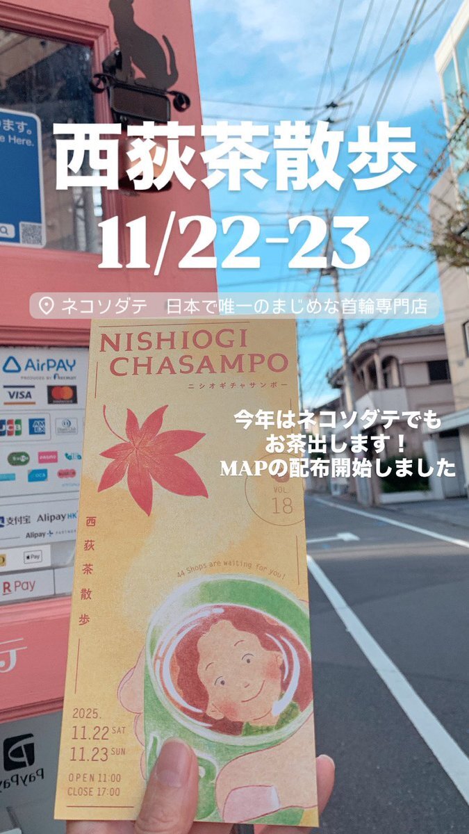 今年はデザフェスとかぶらなかったので #西荻茶散歩 にネコソダテも参加します! お茶出しますー! 詳細はMAPをゲットしてくださいね✨ 11/15-16はデザインフェスタ、11/22-23は西荻茶散歩と、2週にわたりよろしくお願いいたします! #西荻窪 #デザインフェスタ62 #ニシオギチャサンポー pic.x.com/OrDPm3X7Kl