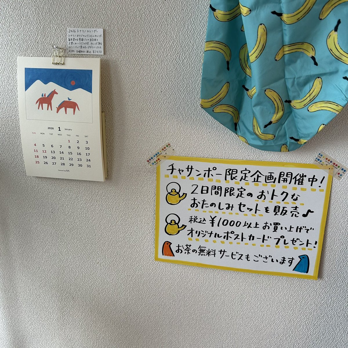 今週のお店 入口付近は干支手ぬぐいや布小物など季節に合わせた贈り物コーナー🎁 ラッピング無料です🎀 \2026年カレンダーフェアも開催中/ 手帳もございます! 22・23日の土日はイベント #西荻茶散歩 🍵♪ 今日も爽やかな良いお天気☀️夜8時まで営業です🏠 今週もよろしくお願いいたします🍀 pic.x.com/AnUfqMdd5w
