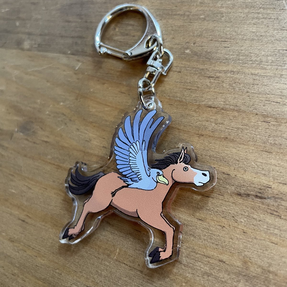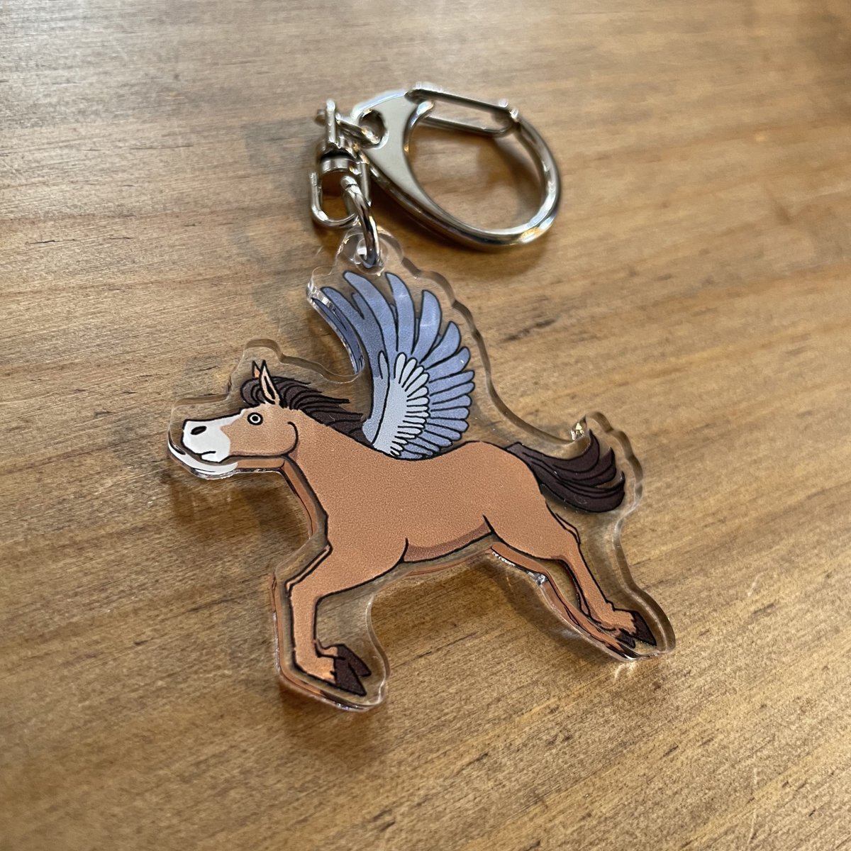 今週末に店頭にて午年アクリルキーホルダー販売いたします。両面なのでひっくり返っても大丈夫です。馬に翼。税込770円。何卒よろしくお願いいたします。#西荻茶散歩 pic.x.com/YZlWZ4pp94