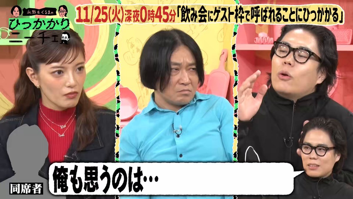 明日の #ひっかかりニーチェ は 「飲み会にゲスト枠で呼ばれることにひっかかる」 久しぶりに会う友人に誘われた飲み会 行ってみたら自分以外はいつメンで 内輪ノリで盛り上がる始末… 一体どうするべきだった⁉️ さらに『盛り上がったライブは打ち上げがつまらない』 という話に永野&くるま大共感😡