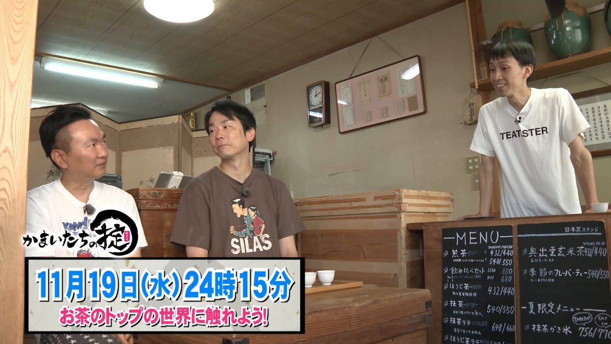ーーーーー今夜の掟ーーーーーーー トップの世界に触れよう🍵 茶師十段の超絶技にかまいたち挑戦! ーーーーーーーーーーーーーーーー 🍃 “全国で30人だけ”の最高位・茶師十段に学ぶ! 👃 見た目・香り・味だけで茶葉を見抜く神業 ☕ かまいたちも利き茶に挑戦! 密かに展開される
