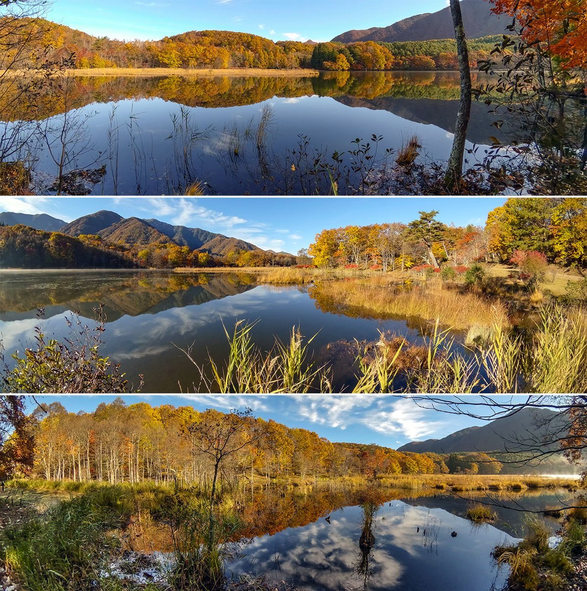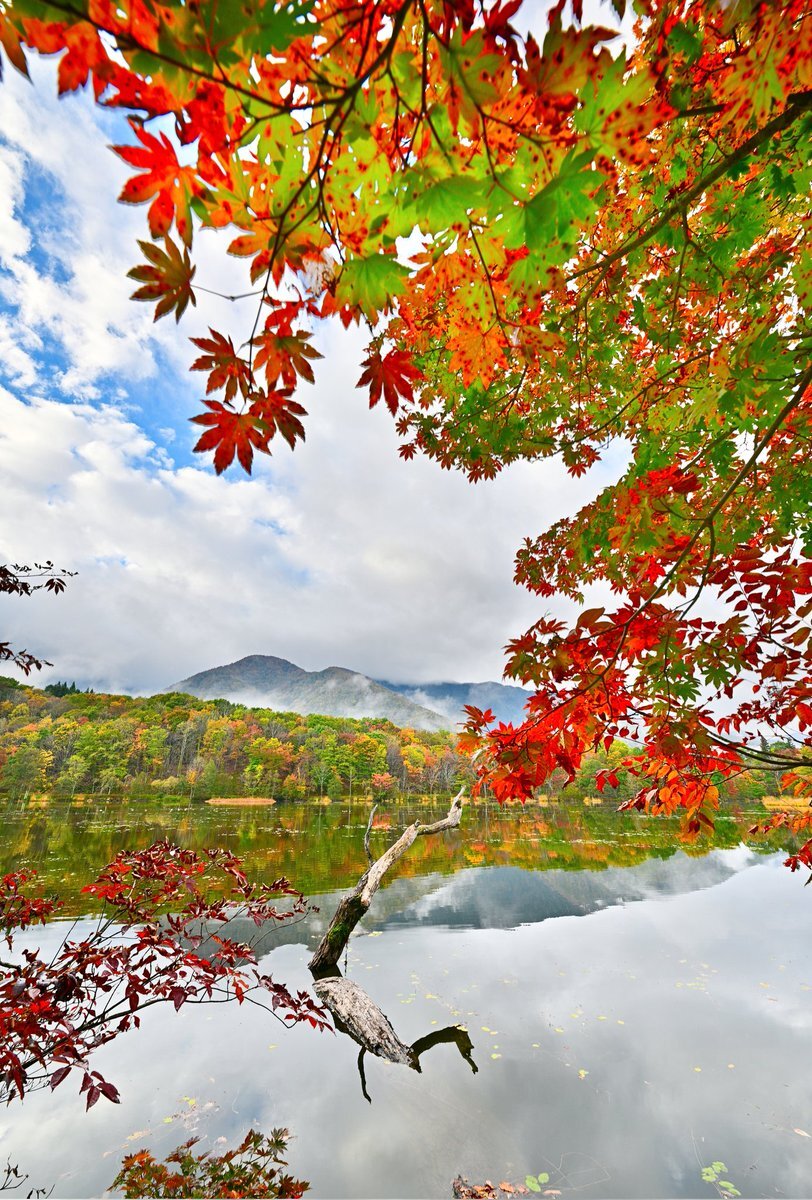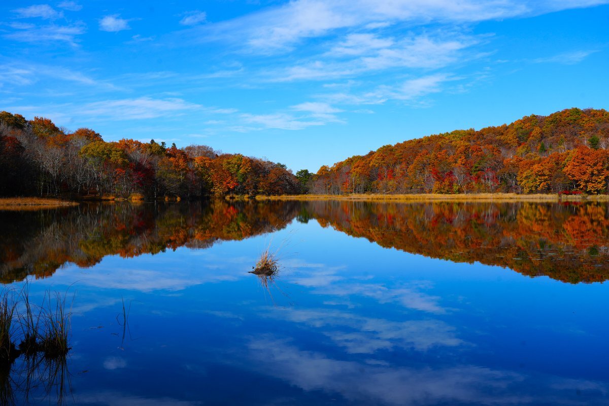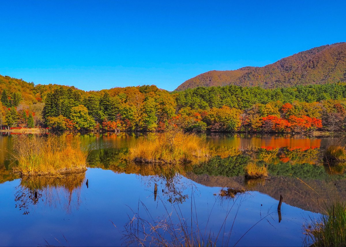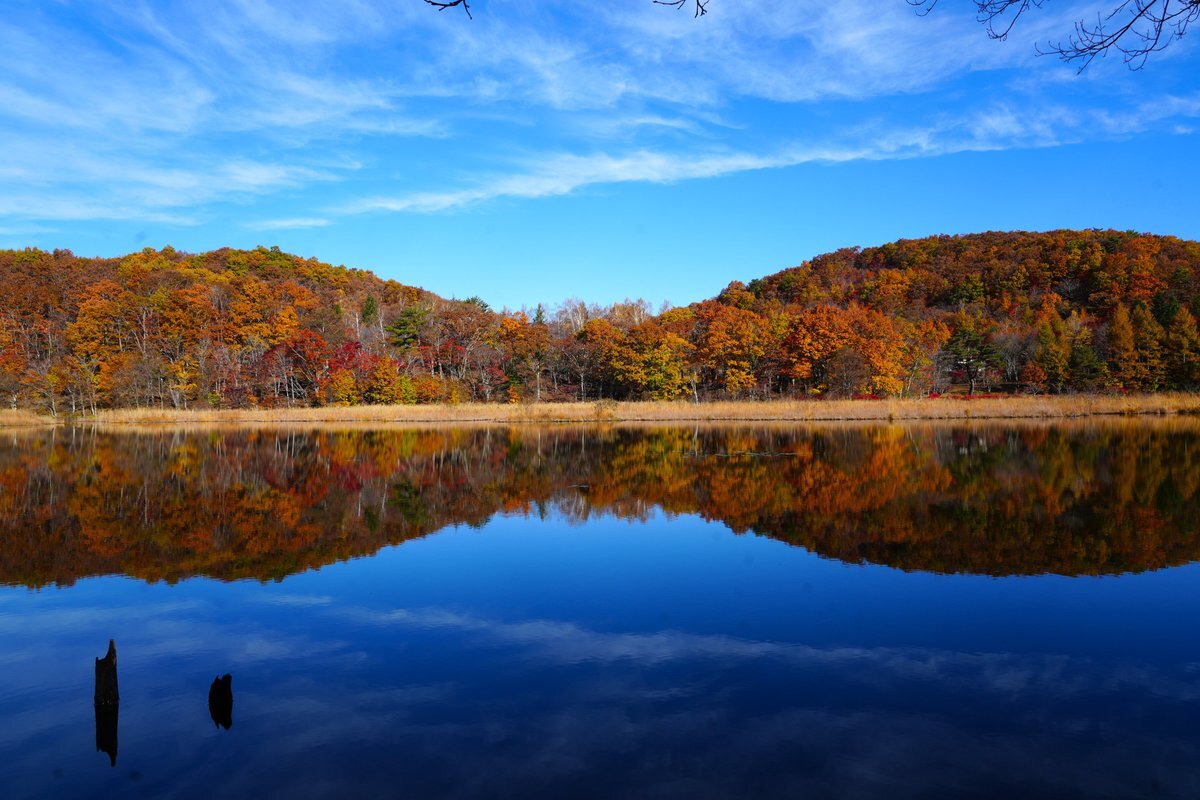 観音沼シンメトリー🍁 明日は天気悪くなるとの事なので今年初の観音沼へ📷 #空ネット #観音沼森林公園 #下郷町 pic.x.com/X4WE1uS7DZ