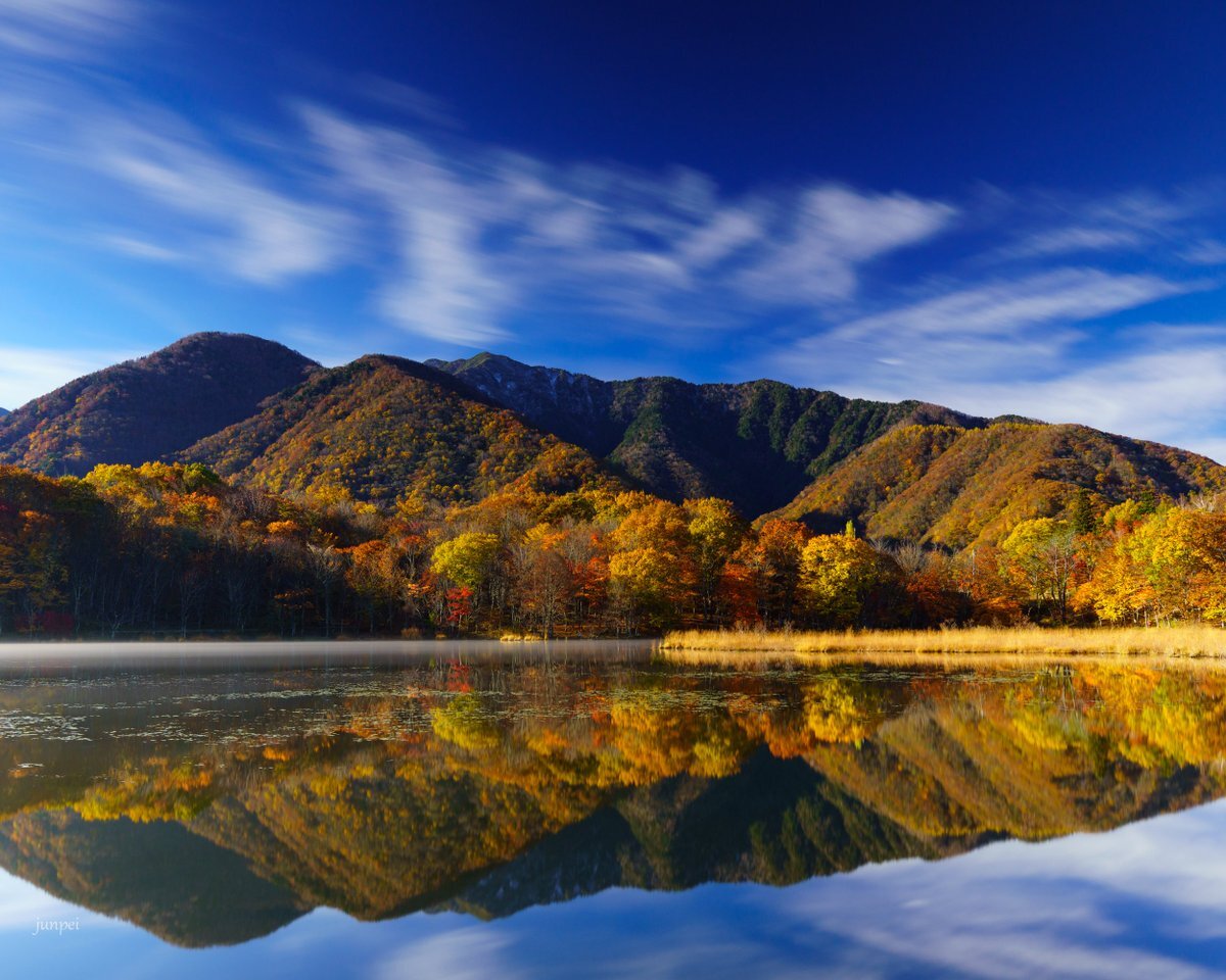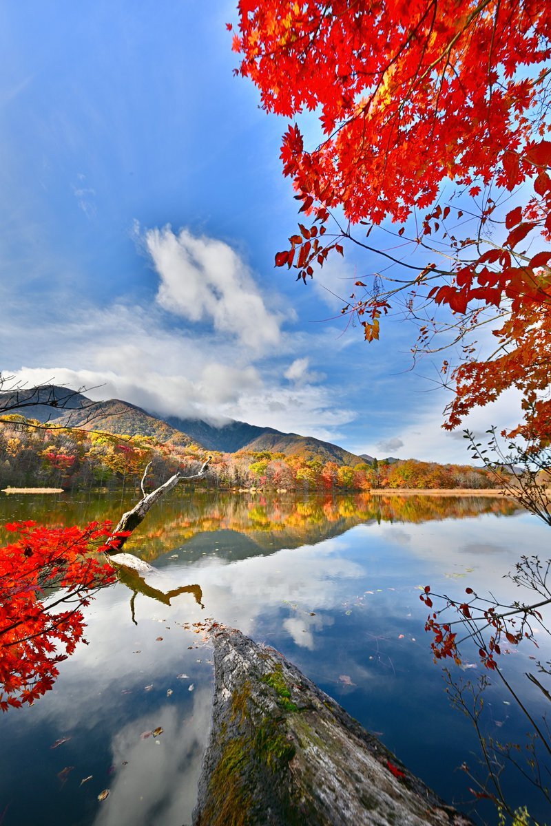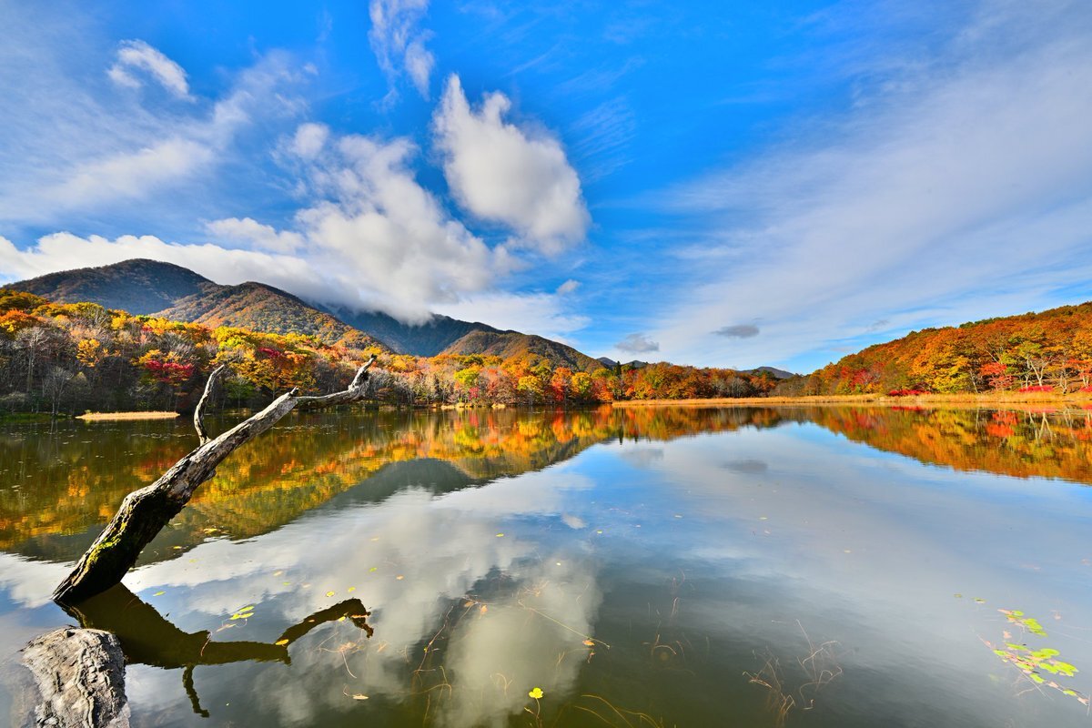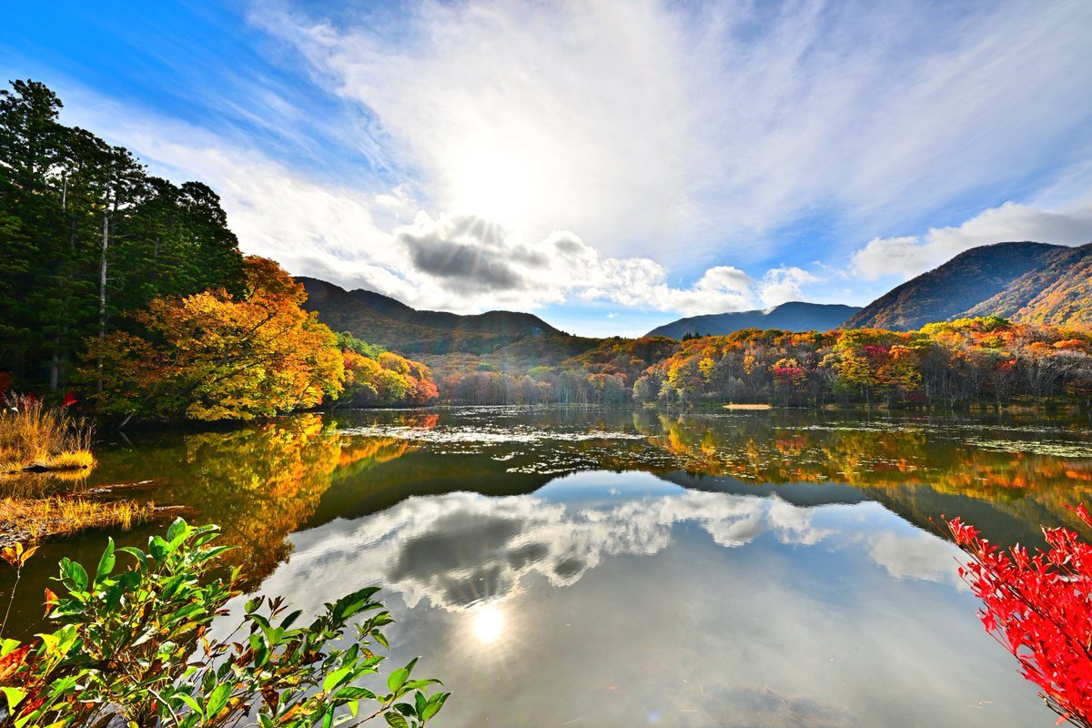 観音沼シンメトリー🍁 明日は天気悪くなるとの事なので今年初の観音沼へ📷 #空ネット #観音沼森林公園 #下郷町 pic.x.com/X4WE1uS7DZ