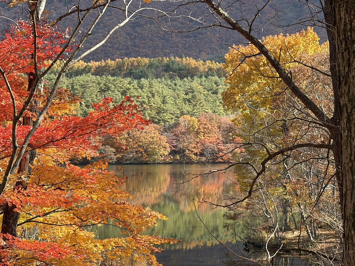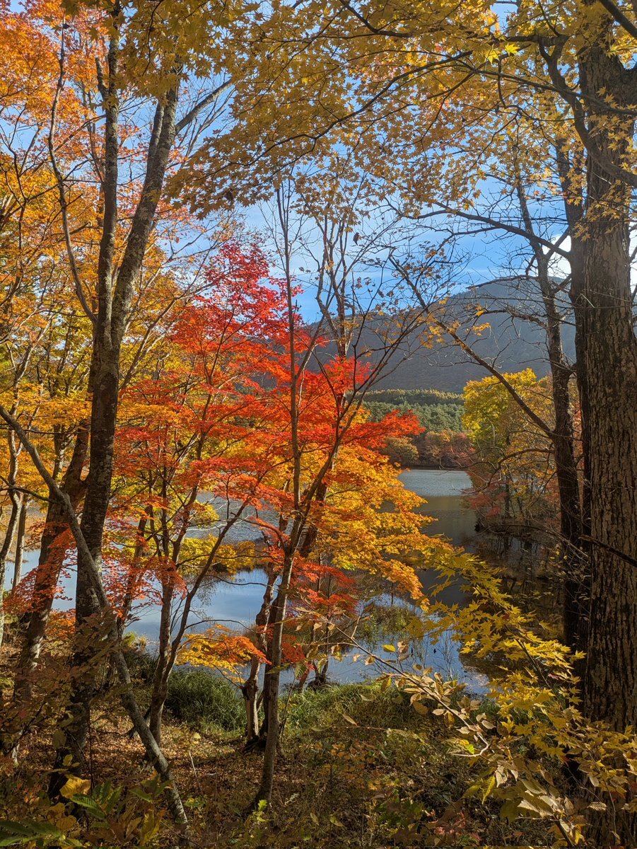 紅葉ドライブ:11/2 ③の続き #観音沼森林公園 #下郷町 鮮やかな色合いの紅葉越しに見る観音沼。 いつまでも見ていられます🤗 pic.x.com/TrKrCuCU09