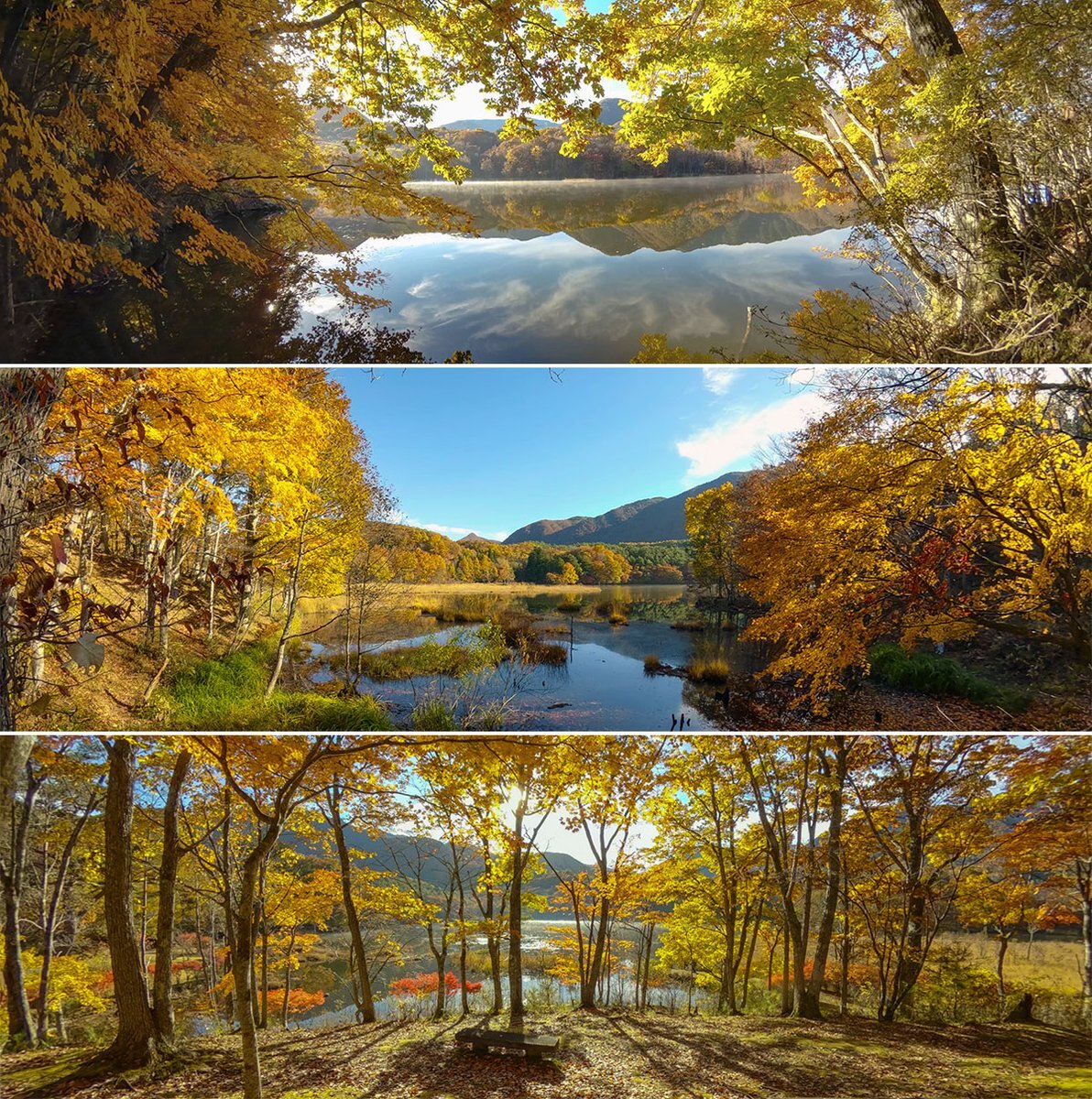 紅葉ドライブ:11/2 ③ 紅葉の名所で車も混むので、朝8時には到着✌️ #観音沼森林公園 #下郷町 ちょうど見頃で、水鏡が息をのむほど美しい‼️ 今年も来れてよかった〜😭 pic.x.com/MWlmPv4JUe