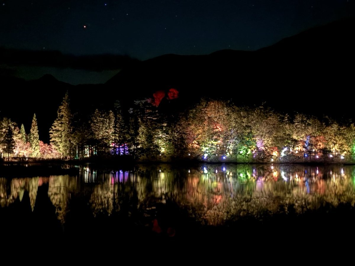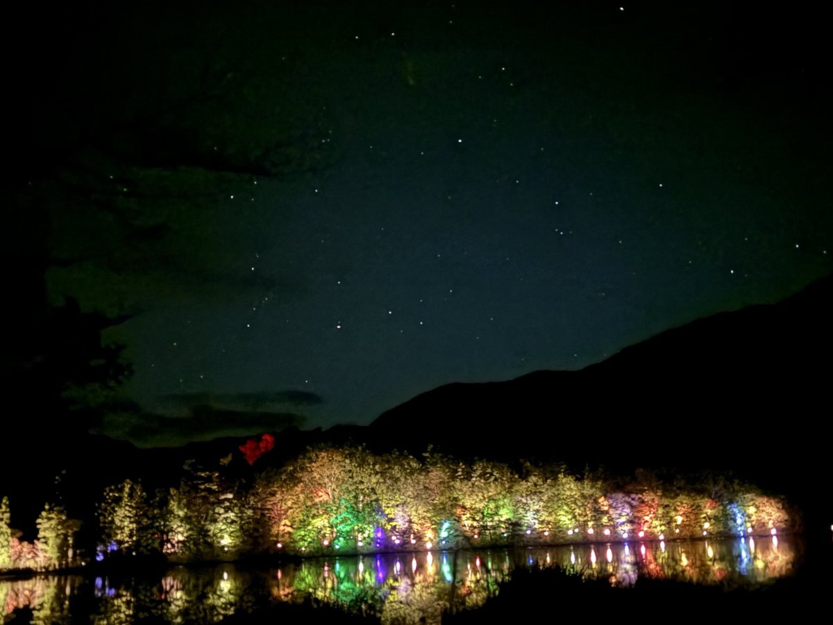 今夜のライトアップは中止 でしたね🌟 一週間前 一夜限りのこの景色🍁🌟 載せときます 星空も✨✨✨ #観音沼森林公園 #福島県下郷町 #🐻出没中止 pic.x.com/7j6Qs2SNty