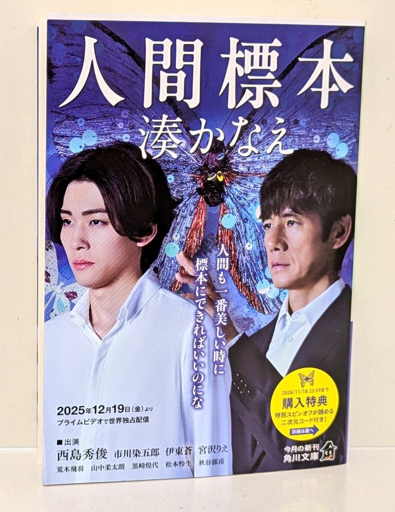 🌱#角川文庫🌱 📖『#人間標本』 蝶に魅入られ、昆虫学の権威となった榊史郎は、ある日天啓を受ける。あの美しい少年たちは蝶なのだーー。五体目の標本が完成した時に大きな達成感を得た史郎は、「最高傑作」に取り掛かることを決めた。 #湊かなえ pic.x.com/bbTQmjAqMI