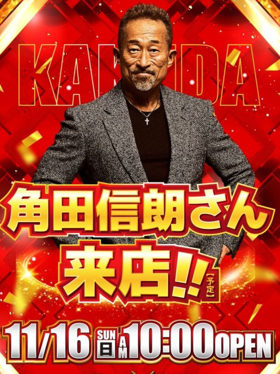 11/16(日)角田信朗さん来店予定! MC担当します♪ 👊【グランキコーナ鶴見店】13時頃~ 👊【キコーナ守口店】16時頃~ 観覧無料(※18歳未満入場不可)※時間・日程は交通事情や天候により変更・中止となる場合があります。 #角田信朗 #キコーナ #グランキコーナ鶴見店 #キコーナ守口店 #pr pic.x.com/aIdUFSVnOu