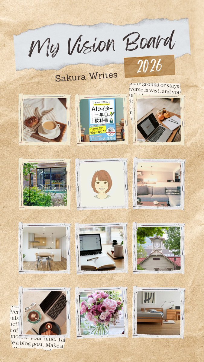 Canvaでつくった私のビジョンボード🌿 目で見ると“なりたい自分”が少しずつ現実に近づいていく気がします✨ #ドリームボード #言葉のある暮らし #AIライターの夢 pic.x.com/HLd4whWTbZ x.com/sakura135712/s…