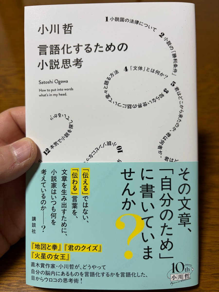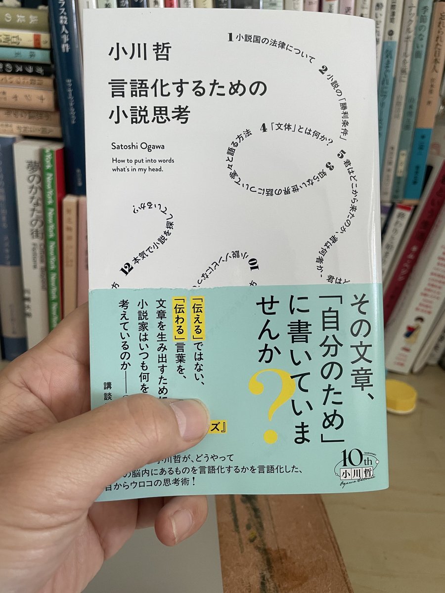 『言語化するための小説思考』今すぐ読みたい欲しい買いたい書店行く時間くれ。 とはいえ、平易な言葉で書かれた六法全書やろな。読めても弁護士にしか意味がわからんタイプの本。 無免許で有資格者ムーブしたるぜぇ。 #小川哲 #言語化するための小説思考 #小説家志望