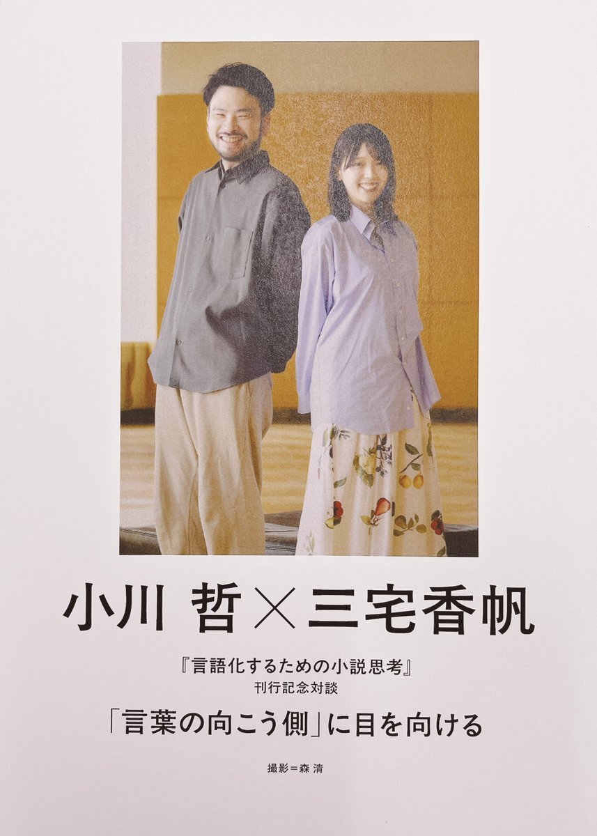 【『言語化するための小説思考』刊行記念対談】小川哲さん×三宅香帆さん「「言葉の向こう側」に目を向ける」 生み出した言葉は、「誰」のためにあるのだろう。最前線で活躍する作家と批評家による「言語化」対談。(写真=森清さん)#群像12月号