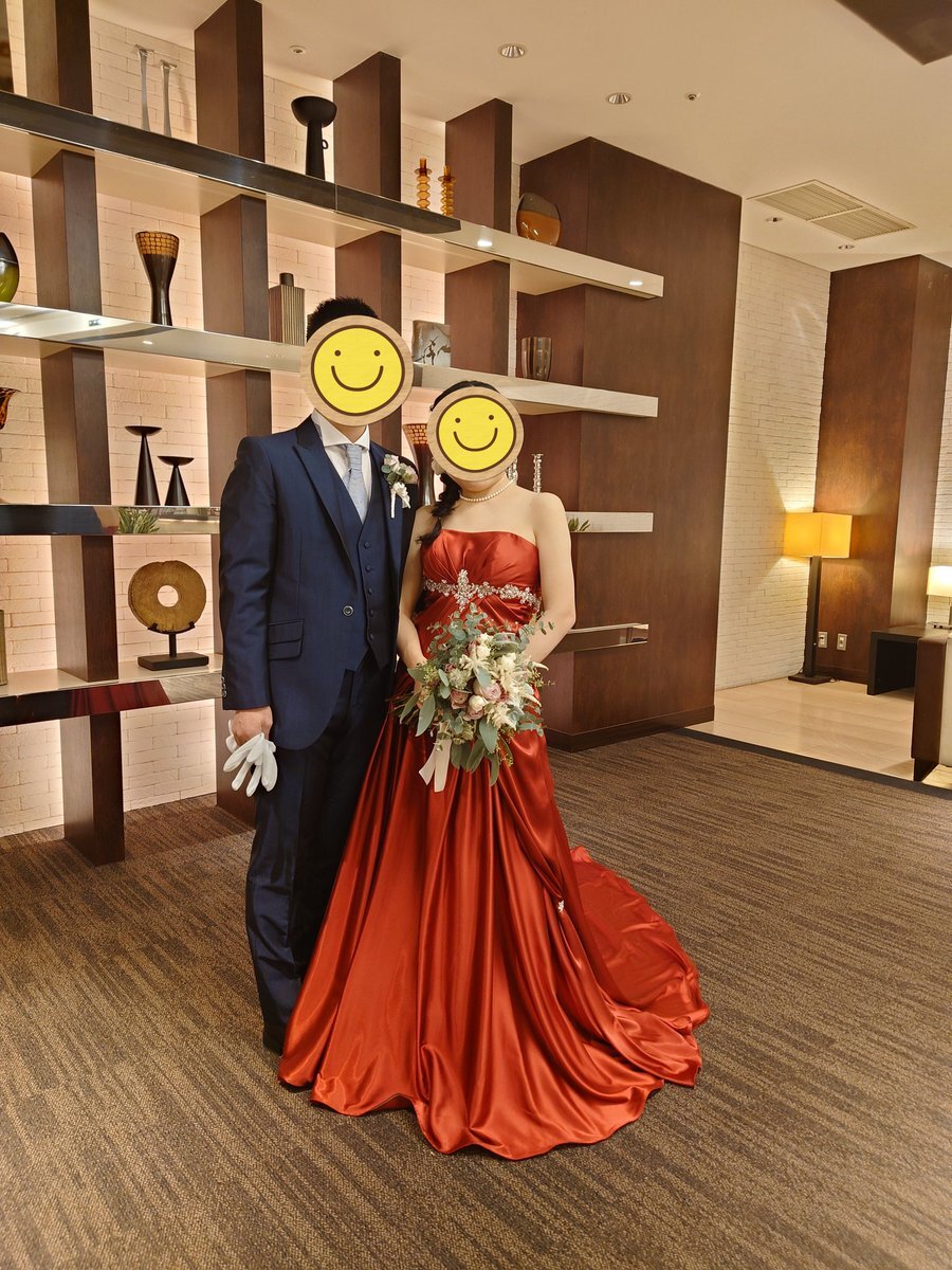 今日は結婚記念日💍𓈒𓏸 結婚式挙げてもう1年経つとは。最悪車椅子も覚悟してたけど歩けて良かったな。ドレスの下はスニーカーなのだw そして何より社会人になってから将来の為に貯金しといて良かった〜DOMOTO要素を入れたくてカラードレスでDOMOTOカラーにした✨ #記念日 #結婚記念日 #綿婚式 pic.x.com/61mPRcsECC