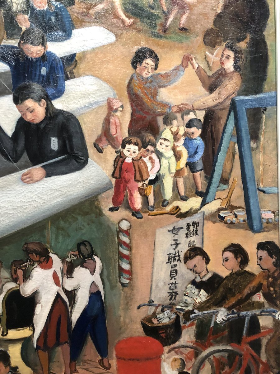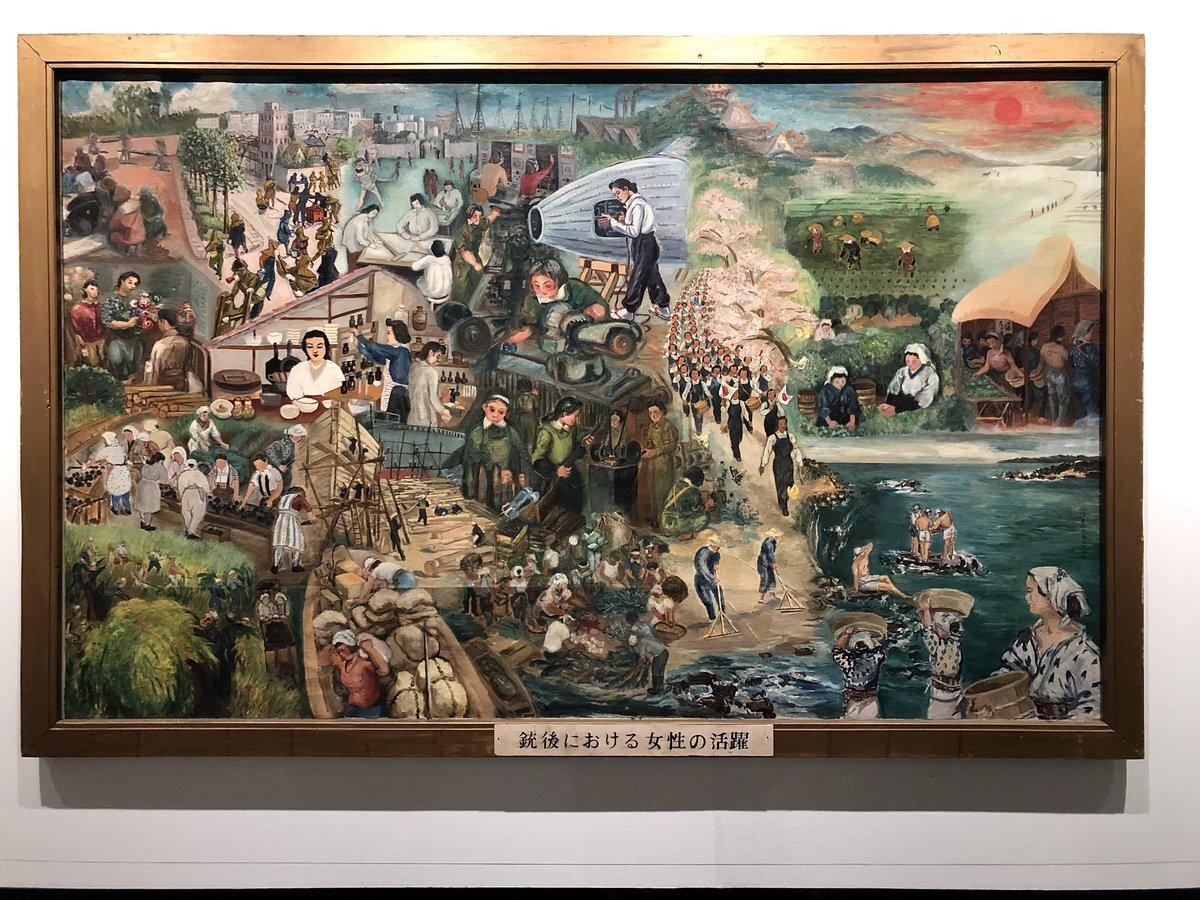 Women Artists Service Corps Pictures of All Women in Japan at Work in the Greater East Asia War (Spring-Summer) 1944 oil on canvas Hakozakigu, Fukuoka 女流美術家奉公隊 《大東亜戦皇国婦女皆働之図 春夏の部》 1944 油彩・キャンバス 筥崎宮(はこざきぐう) #記録をひらく記憶をつむぐ pic.x.com/4aDGgrwjrz