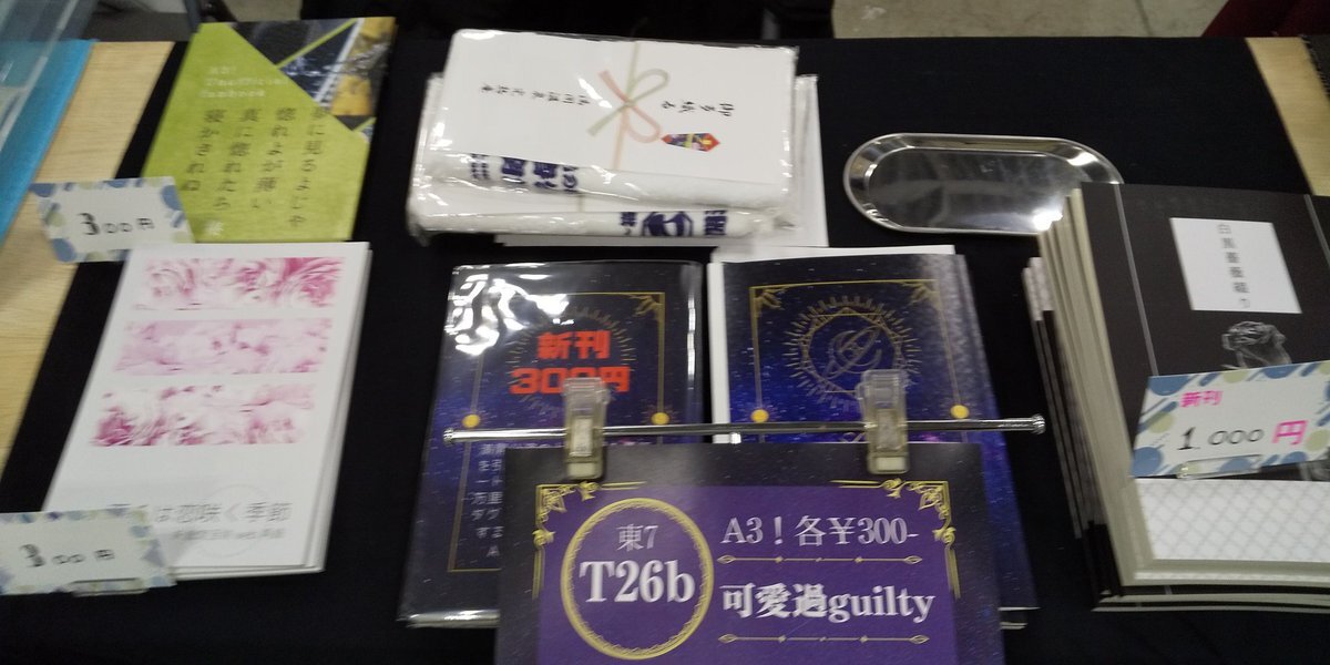 #設営完了 兵摂新刊用意して東7-26b #可愛過guilty にてお待ちしております〜! 売り子にお願いしてますので、いついらして頂いても大丈夫です^^ 本日はどうぞよろしくお願いします pic.x.com/t3vG5jU56K