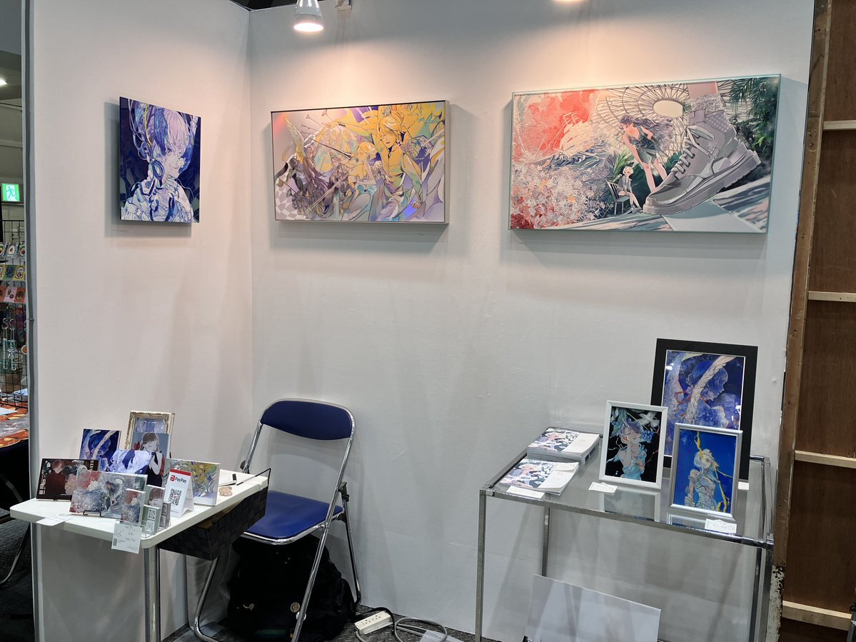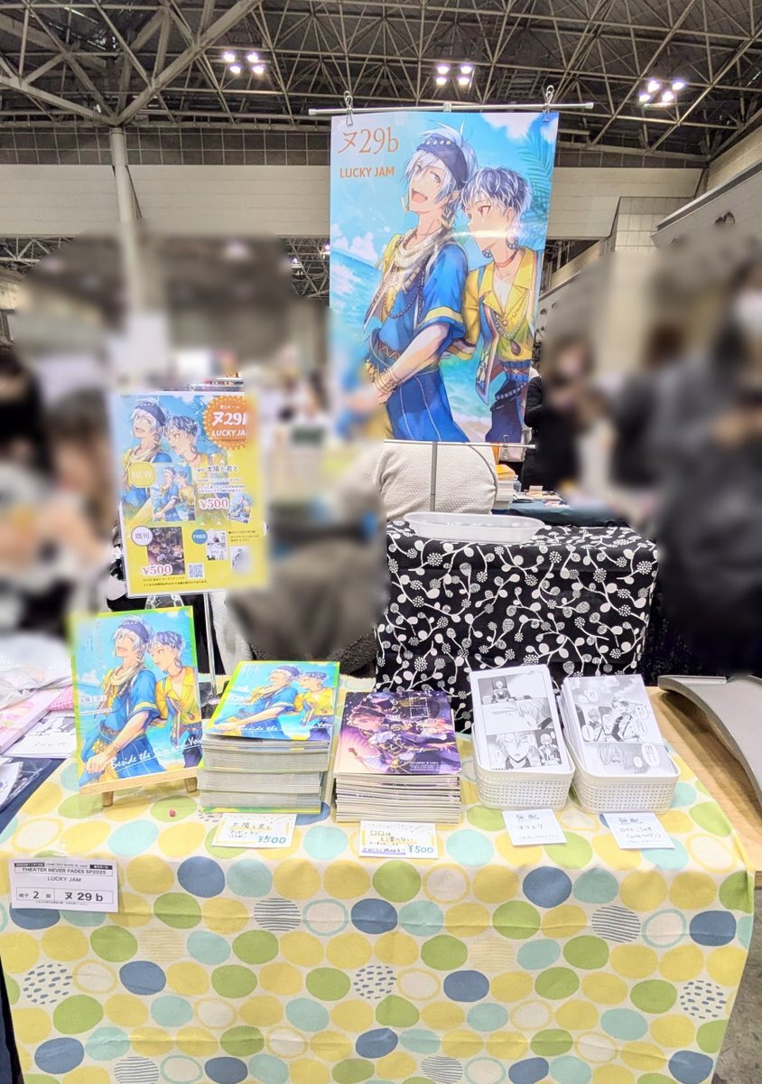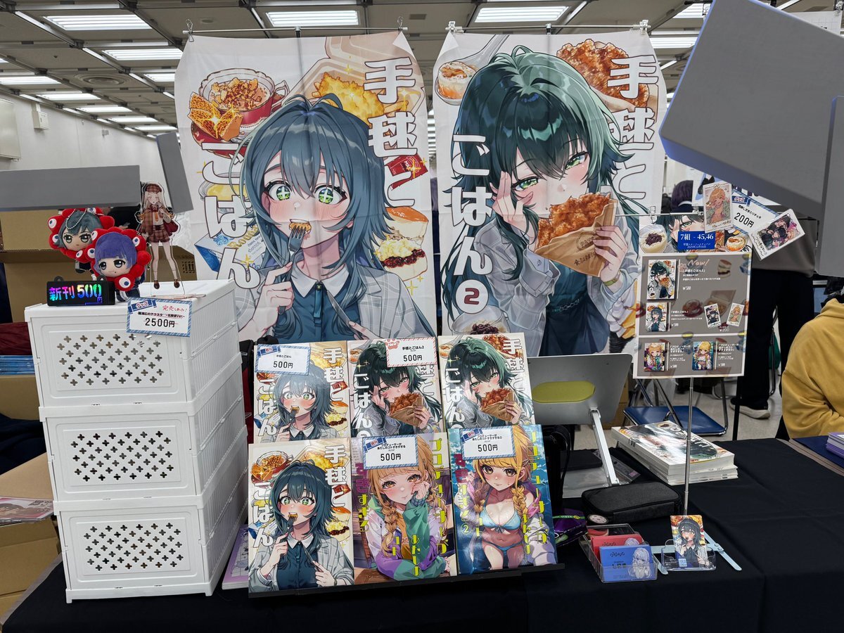 設営完了でおま✨😎✨ 原画が幅利かせ過ぎて何時も以上にゴチャってますが😂 【東7ホールB29a】にてお待ちしています😊 挨拶のみでも全然OKなので💃お気軽に💃 #設営完了 pic.x.com/RqtmV2GyaS