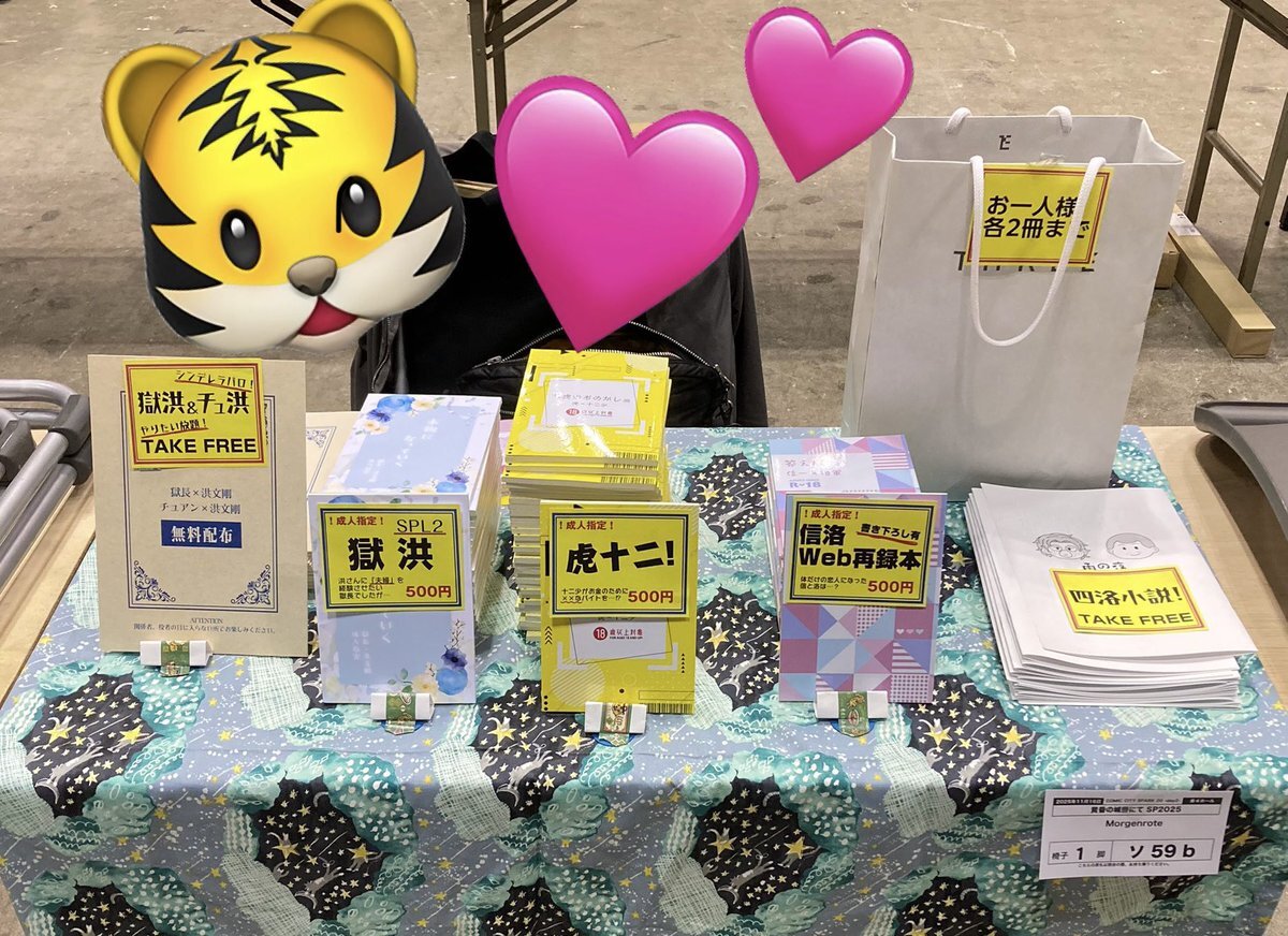 #設営完了 しましたー✌️ 東4ソ59b Morgenroteです。 無配のご機嫌ナナメ洪さんポストカードは置く場所なくなったのでコピー本に挟んでいます。遊びにきてね。メロンパン買えた🍈✌️ pic.x.com/jEsiGG9TSm