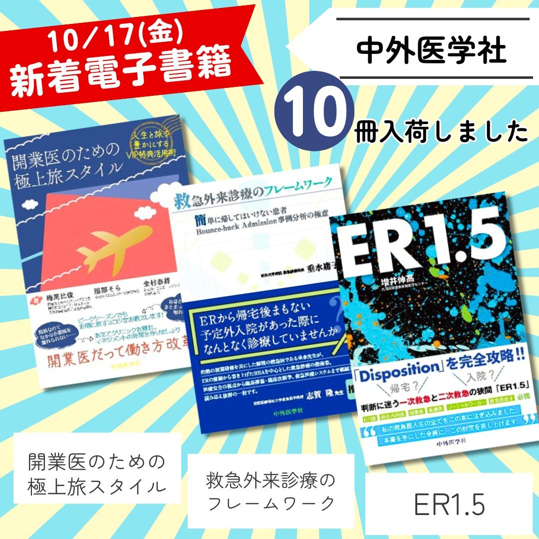/  11/13 (木)電子書籍入荷情報🌸 \ 本日、新着の電子書籍39冊が追加されました! 試し読みもOK、章ごとの購入も可能です。 #メディカ出版 様(8冊) #診断と治療社 様(5冊) #医学図書出版 様(4冊) #クリエイツかもがわ 様(2冊) #中央法規出版 様(5冊) #中外医学社 様(5冊) #東京医学社