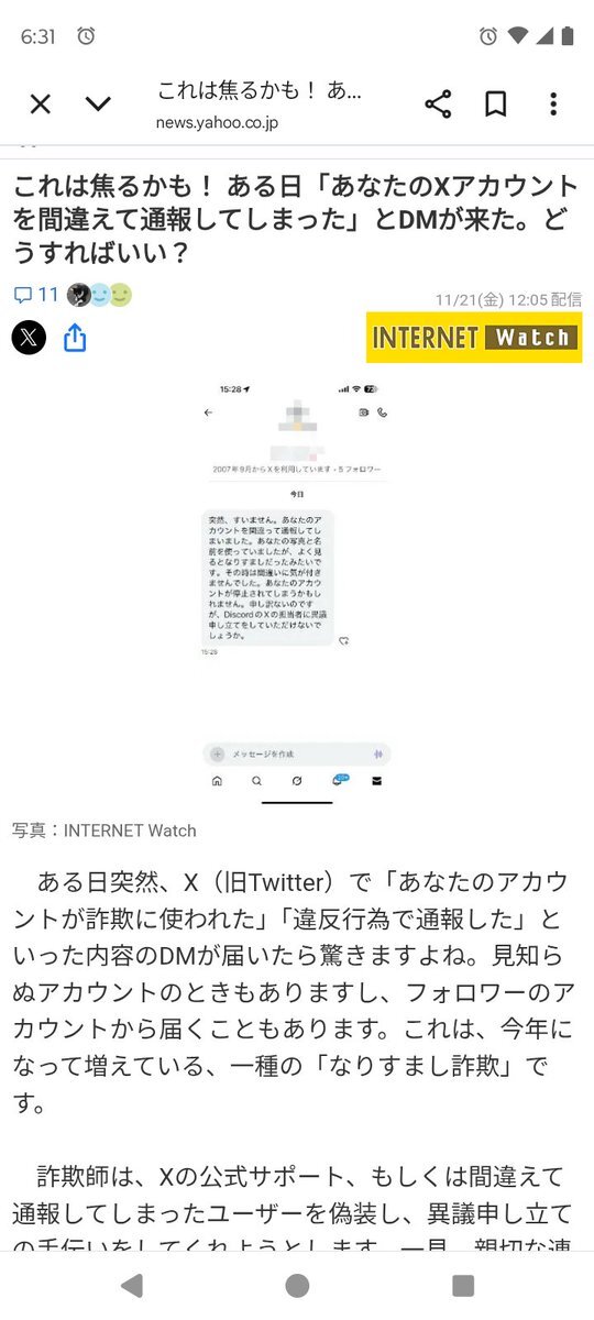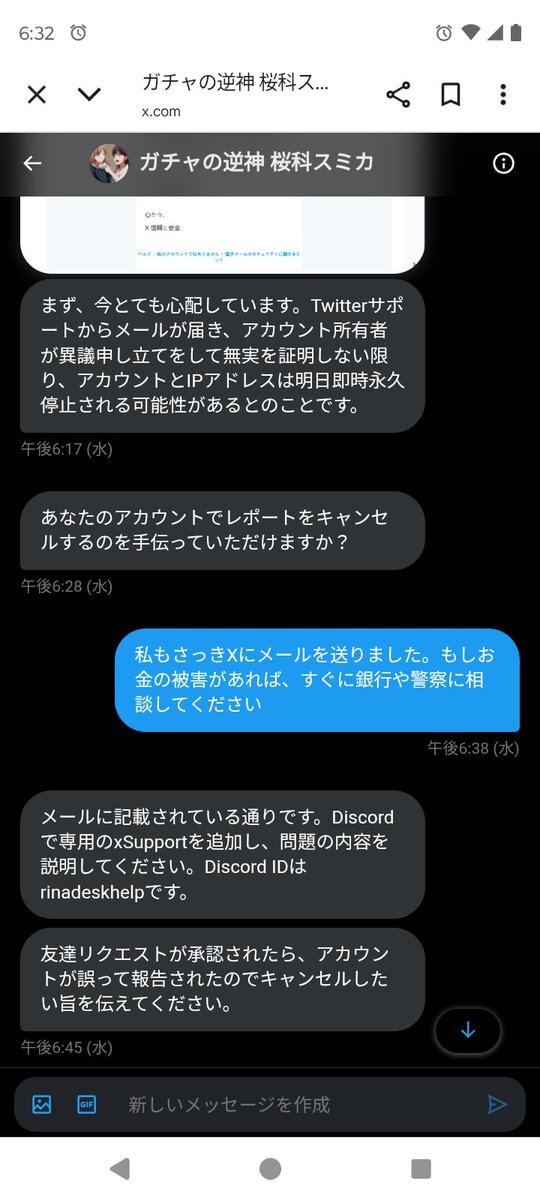 #詐欺注意 #注意喚起 最近あるフォロワーさんからDMもらいました 他人(今回は俺だったみたい)になりすましてdiscoに誘導手口多いみたい Xが他に誘導は絶対にないです‼️ そこんとこ、良識ある思慮深いフォロワーならわかると思うけど、よろしく pic.x.com/SwYRswDIZ4