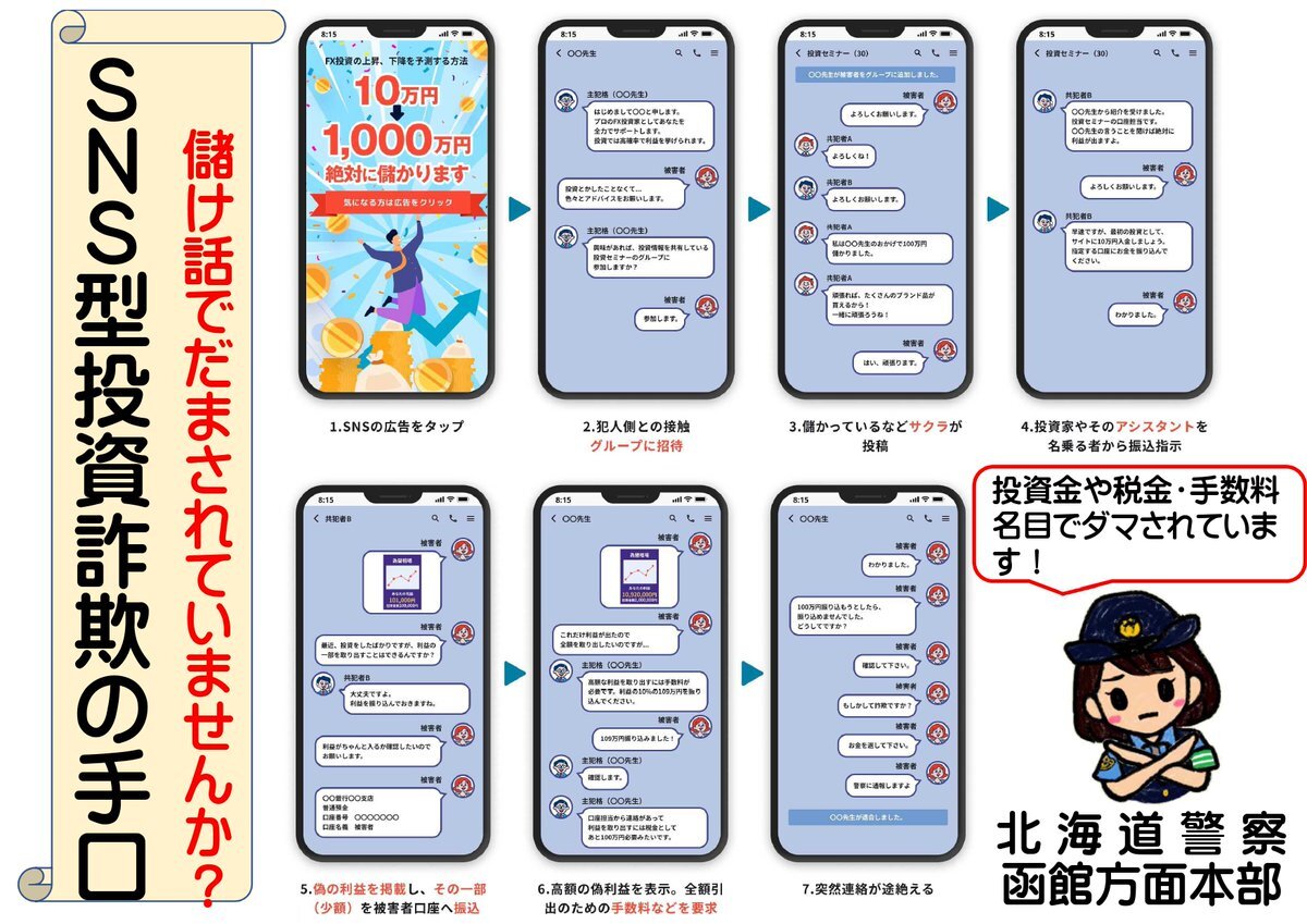 🚨北斗市で5,400万円のSNS型投資詐欺被害! ネット広告→LINEグループ招待→「絶対儲かる」は詐欺です ⚠️個人口座への振込指定は特に注意 📱「ほくとポリス」アプリで最新手口をチェック 💬困ったら#9110 #投資詐欺 #詐欺注意 #拡散希望 pic.x.com/szIT6RqtKo