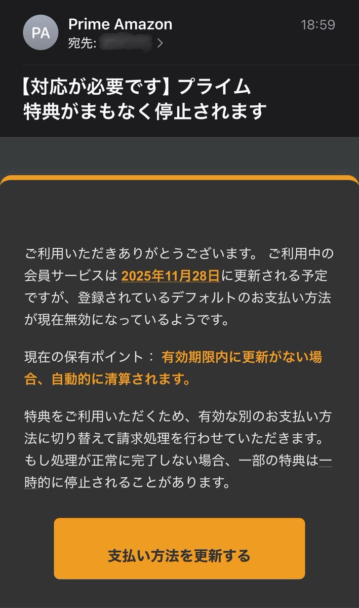 Amazonプライムに登録なんてしてないし 普段使わないメールアドレスに届くし 試しにタップしたらページ開けないし 詐欺でしかなさそう #Amazonプライム #詐欺注意 pic.x.com/xTb69EF6tP