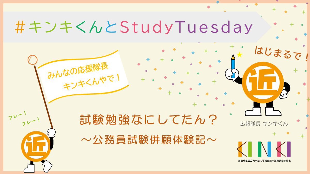 11月になったで!来週から「Study Tuesday✏」はじめるで! キンキくん的には、今の時期どれくらい勉強したらいいんかなとか気になるねんけどどうかな~?公務員試験と併願してた先輩に色々聞いてみようと思ってるで! #試験 #キンキくんとStudyTuesday pic.x.com/sX1LCERmET