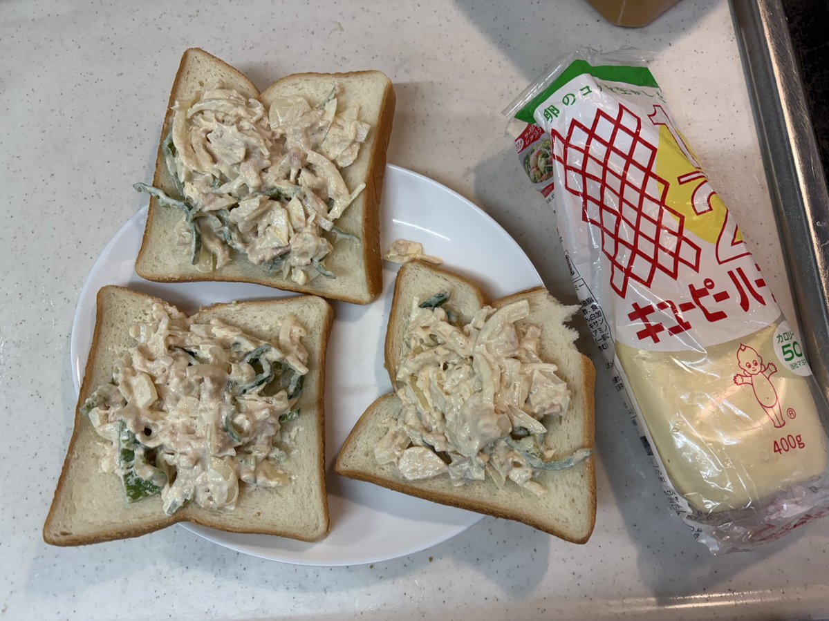 今朝 冷蔵庫に 3枚の 食パン🍞 一つかじった跡がある 🙄朝色🥢 それは自分の分に しました🍞 #認知症介護 #BROS1991 #キューピーハーフ #ツナマヨオニオンチーズ pic.x.com/cw8mHHVXyD