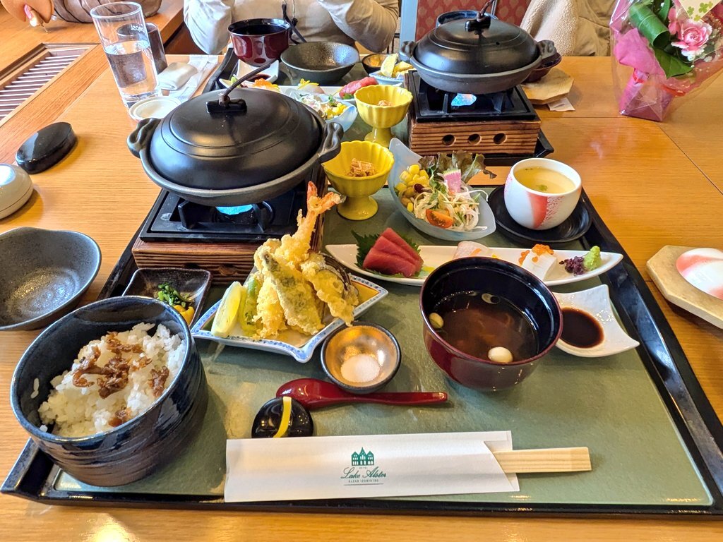 無事に叔母のお誕生日ランチに行ってきました。去年イタリアンランチに行ったことはすっかり忘れてましたが、私の話に合わせてました💦鮭とキノコの陶板焼き、サラダ、お浸し、お刺身、天ぷら、大飯、赤出汁、茶碗蒸し、デザート、コーヒー。ぜーんぶ平らげて満面の笑みの叔母でした〜。#認知症介護 pic.x.com/BO6DsxB2HS